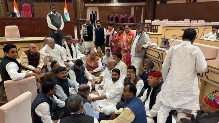 ରାଜସ୍ଥାନ ପିସିସି ସଭାପତି ଗୋବିନ୍ଦ ସିଂ ଦୋତସାରା, ବିରୋଧୀ ଦଳ ନେତା ରାମକେଶ ମୀନା, ଅମିନ କାଗଜି, ଜାକିର ହୁସେନ ଗେସାୱତ, ହାକିମ ଅଲ୍ଲୀ ଖାନ ଓ ସଞ୍ଜୟ କୁମାର ଜାଟବ ଗୃହରେ ଶୋଇ ଜଣାଇଛନ୍ତି ପ୍ରତିବାଦ। ସୂଚନା ଅନୁଯାୟୀ, ଗତ ଶୁକ୍ରବାର କଂଗ୍ରେସକୁ କଟାକ୍ଷ କରି ଗୃହରେ ସାମାଜିକ କଲ୍ଯାଣ ଓ ସଶକ୍ତିକରଣ ମନ୍ତ୍ରୀ ଅବିନାଶ ଗେହଲତ କହିଥିଲେ ଯେ, ୨୦୨୩-୨୪ ବଜେଟରେ କର୍ମଜୀବୀ ମହିଳାଙ୍କ ଲାଗି ଉଦ୍ଦିଷ୍ଟ ହଷ୍ଟେଲକୁ କଂଗ୍ରେସ ସରକାର ଦାଦି ଇନ୍ଦିରା ଗାନ୍ଧୀଙ୍କ ନାମରେ ନାମିତ କରିଥିଲା। ମନ୍ତ୍ରୀଙ୍କ ଏହି ବୟାନକୁ ନେଇ ଗୃହ ହୁଲସ୍ତୁଲ ହୋଇଥିଲା। ଏହାକୁ ବିରୋଧୀ ଦଳ ନେତା ତିକାରାମ ଜୁଲ୍ଲୀ ତୀବ୍ର ବିରୋଧ କରିଥିଲେ। ପରେ ସେମାନେ ଗୃହରେ ରାତି କଟାଇ ଏହି ବୟାନର ପ୍ରତିବାଦ ଜଣାଇଥିଲେ।