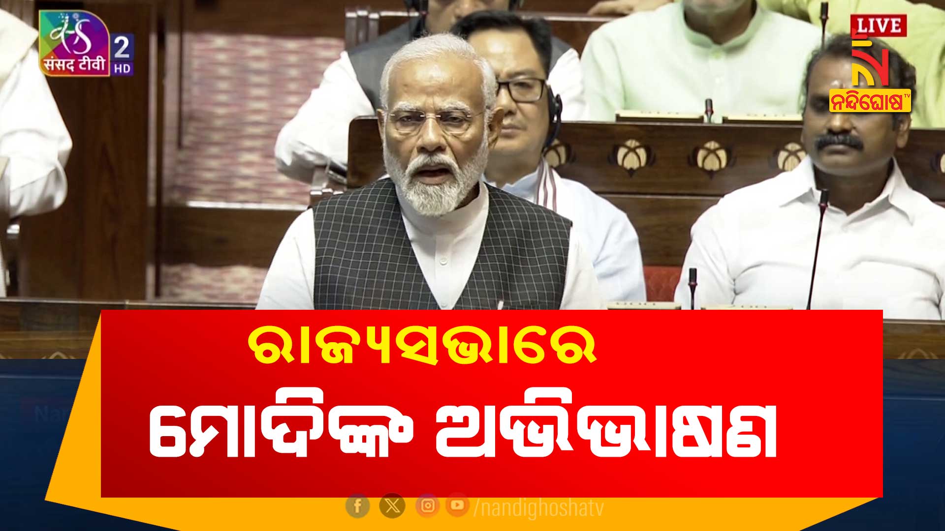 ନନ୍ଦିଘୋଷ ବ୍ୟୁରୋ: ଲୋକସଭା ପରେ ରାଜ୍ଯସଭାରେ ମଧ୍ଯ ବିରୋଧୀଙ୍କୁ କଡ଼ା ଭାଷାରେ ଭର୍ତ୍ସନା କରିଛନ୍ତି। ଦେଶବାସୀଙ୍କୁ ପ୍ରଶଂସା କରି ମୋଦି କହିଛନ୍ତି, ଜନତାଙ୍କ ବୁଦ୍ଧି ଜ୍ଞାନକୁ ନେଇ ଆମେ ଗର୍ବିତ। କାରଣ ବିରୋଧୀଙ୍କ ପ୍ରୋପାଗାଣ୍ଡାକୁ ଲୋକେ ବିଶ୍ଵାସ ନ କରି ସରକାରଙ୍କ କାମକୁ ଗୁରୁତ୍ବ ଦେଇଛନ୍ତି। ମିଛର ରାଜନୀତିକୁ ପ୍ରତ୍ଯାଖ୍ଯାନ କରି ଭରସାର ରାଜନୀତି ଉପରେ ମୋହର ମାରିଛନ୍ତି ଲୋକେ। ମୋଦି କହିଛନ୍ତି, ଆସନ୍ତା ୫ ବର୍ଷରେ ସମସ୍ତଙ୍କୁ ମୌଳିକ ସୁବିଧା ମିଳିବ। ୫ ବର୍ଷରେ ଗରିବୀ ସଂପୂର୍ଣ୍ଣ ଦୂର କରାଯିବ। ଭାରତ ବିଶ୍ବର ତୃତୀୟ ବୃହତ୍ତମ ଅର୍ଥନୀତି ହେବା ପରେ ସାରା ଦେଶର ଲୋକେ ଏହାର ଫାଇଦା ପାଇବେ ବୋଲି କହିଛନ୍ତି ମୋଦି। ତେବେ ଗୃହରେ ମଲ୍ଲିକାର୍ଜୁନଙ୍କୁ କହିବାର ସୁଯୋଗ ଦିଆନଯିବାରୁ ସ୍ଲୋଗାନ ଦେଇଥିଲେ ବିରୋଧୀ। ପରେ ସମସ୍ତେ କକ୍ଷତ୍ଯାଗ କରିଥିଲେ। ଏହାକୁ ନେଇ ମୋଦି କଟାକ୍ଷ କରିଛନ୍ତି, ସତ ଶୁଣିନପାରି ବିରୋଧୀ ପଳାୟନପନ୍ଥୀ ହୋଇଛନ୍ତି। ସେପଟେ ବିରୋଧୀ ଦଳ କହିଛନ୍ତି, ଲୋକଙ୍କୁ ଭ୍ରମିତ କରିବା, ମିଛ କହିବା ହେଉଛି ସେମାନଙ୍କ ଅଭ୍ଯାସ । ସମ୍ବିଧାନକୁ ଆଗରୁ ସେମାନେ ବିରୋଧ କରୁଥିଲେ, ଏହା ଆମେ କହିବାକୁ ଚାହୁଁଥିଲୁ। ଆମକୁ କହିବାକୁ ସୁଯୋଗ ଦିଆଯାଇନଥିବାରୁ ଏହାକୁ ନିନ୍ଦା କରାଯାଇଥିବା ଖଡ଼ଗେ କହିଛନ୍ତି।