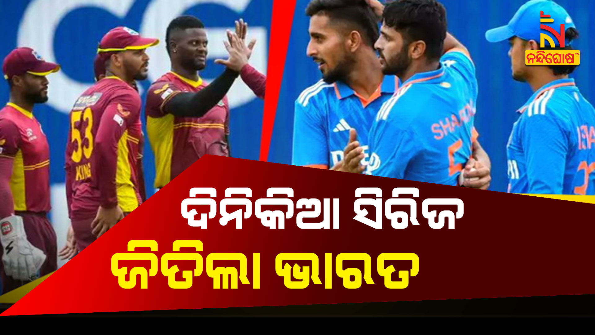 ଟାରୋବା: ୱେଷ୍ଟଇଣ୍ଡିଜ ବିପକ୍ଷରେ ଦିନିକିଆ ସିରିଜ ଜିତିଲା ଭାରତ । ଭାରତୀୟ ଦଳ ଯୁବ ଖେଳାଳିଙ୍କୁ ନେଇ ଏହି ଦିନିକିଆ ସିରିଜ ଖେଳି ୱେଷ୍ଟଇଣ୍ଡିଜ୍ ବିପକ୍ଷରେ 2-1 ରେ ଦିନିକିଆ ଶୃଙ୍ଖଳା ଜିତିଛି । ମଙ୍ଗଳବାର ହାର୍ଦିକ ପାଣ୍ଡ୍ୟାଙ୍କ ଦଳ ତୃତୀୟ ଦିନିକିଆରେ ୱେଷ୍ଟଇଣ୍ଡିଜ୍କୁ ୨୦୦ ରନ୍ରେ ପରାସ୍ତ କରି ୨-୧ରେ ଶୃଙ୍ଖଳା ବିଜୟର ସଫଳତା ପାଇଛି ।