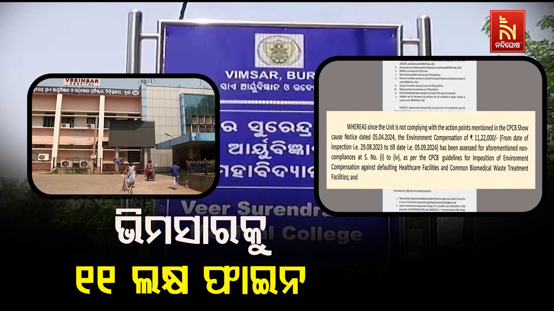 ସମ୍ବଲପୁର: ଭିମସାରକୁ ୧୧ ଲକ୍ଷ ଟଙ୍କା ଫାଇନ । ୧୧ଲକ୍ଷ ୨୨ ହଜାର ଟଙ୍କା ଫାଇନ କରିଛି କେନ୍ଦ୍ରୀୟ ପ୍ରଦୂଷଣ ନିୟନ୍ତ୍ରଣ ବୋର୍ଡ । ମେଡିକାଲରୁ ବାହାରୁଥିବା ବର୍ଜ୍ଯବସ୍ତୁ ପରିଚାଳନାରେ ଭିମସାର ମାନଦଣ୍ଡ ପୂରଣ କରୁନଥିବାରୁ ଏହି ଫାଇନ କରାଯାଇଥିବା ଜଣାପଡିଛି। ଭିମସାରର ବର୍ଜ୍ଯବସ୍ତୁ ପରିଚାଳନାର ସ୍ଥିତି ପରଖିବା ପାଇଁ ବିଗତ ଦିନରେ କେନ୍ଦ୍ରୀୟ ପ୍ରଦୂଷଣ ନିୟନ୍ତ୍ରଣ ବୋର୍ଡର ଏକ ଟିମ୍ ଭିମସାର ପରିଦର୍ଶନ କରିବା ସମୟରେ ସବୁକିଛି ଠିକ୍ ଠାକ୍ ନଥିବା ଦେଖିବାକୁ ପାଇଥିଲେ । ଫଳରେ ଏକ କାରଣ ଦର୍ଶାଅ ନୋଟିସ ଜାରି କରିବା ସହ ବର୍ଜ୍ଯବସ୍ତୁ ପରିଚାଳନାର ମାନଦଣ୍ଡ ପୂରଣ ପାଇଁ ନିର୍ଦ୍ଦେଶ ଦେଇଥିଲେ। ଏହା ସତ୍ତ୍ଵେ ଭିମସାର ତାହା ପୂରଣ ନକରିବାରୁ ୧୧ ଲକ୍ଷ ୨୨ ହଜାର ଟଂକା ଫାଇନ କରାଯାଇଛି ।