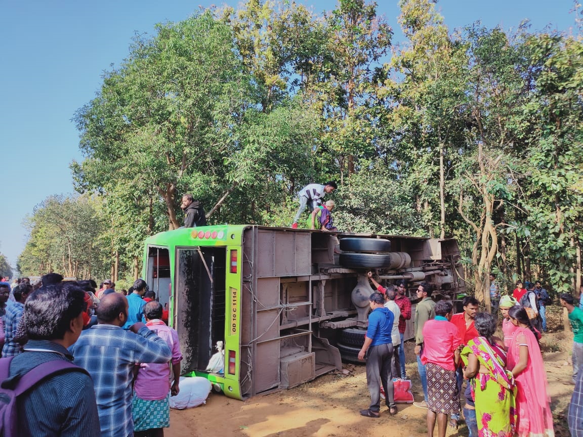 ଓଲଟିଲା ବସ୍‌ ୨ ମୃତ, ୨୦ରୁ ଉର୍ଦ୍ଧ୍ୱ ଆହତ