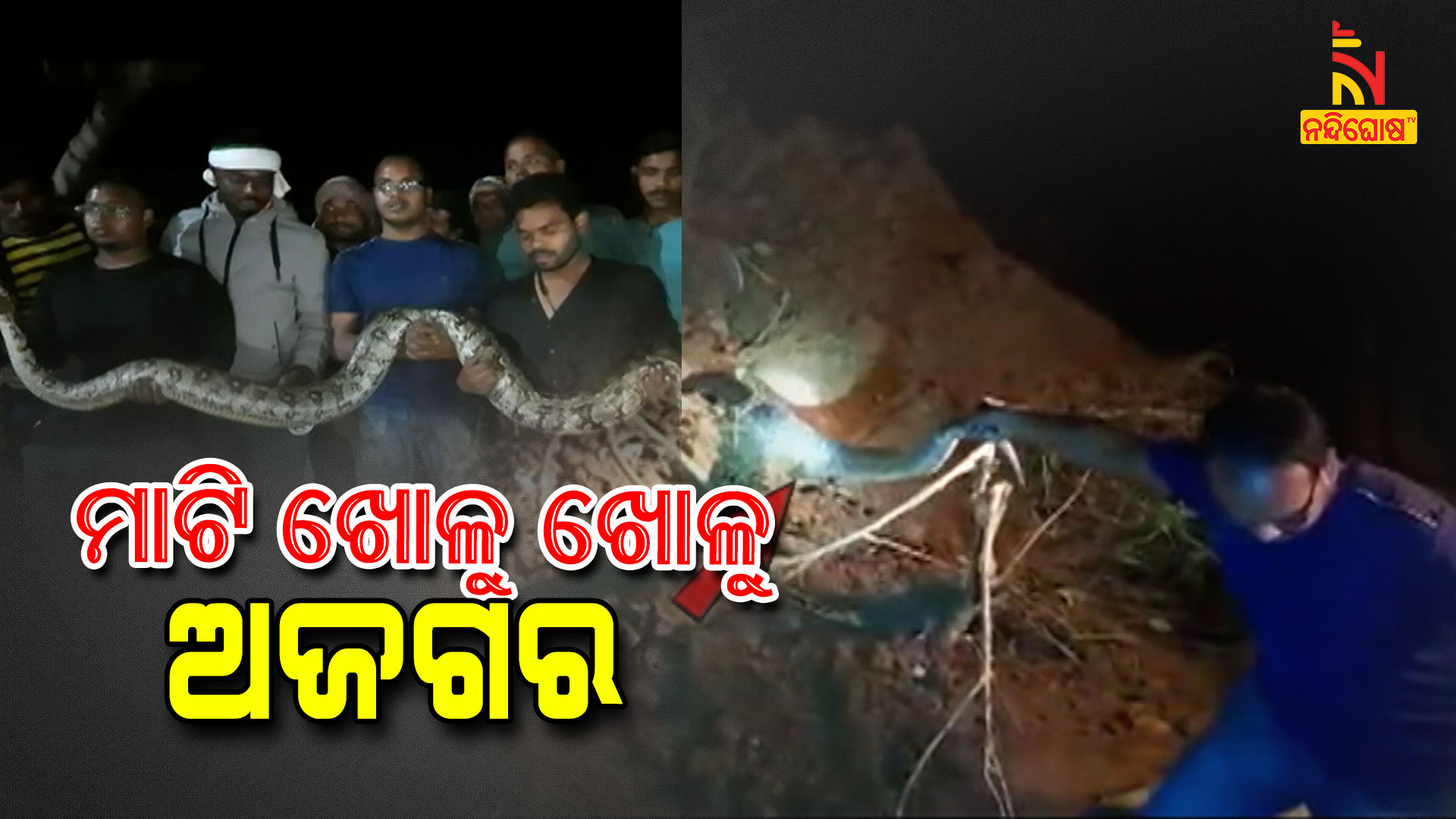 ଗଞ୍ଜାମ: ମାଟି ଖୋଳୁ ଖୋଳୁ ବାହାରିଲା ଅଜଗର। ଏକା ଥରକେ ଦୁଇ ଦୁଇଟି ବିଶାଳକାୟ ଅଜଗର। ଦେଖିଲେ ଭୟରେ ଗୋଡ଼ ହାତ ଥରିବ ଲୋମ ଟାଙ୍କୁରି ଉଠିବ। ନୂଆ ବନ୍ଧର ସୌନ୍ଦର୍ଯ୍ୟ କରଣ ଚାଲିଥିବା ବେଳେ ବାହାରିଥିଲା ଏହି ବିରାଟ ଜନ୍ତୁ । ଏଭଳି ଏକ ଘଟଣା ଦେଖିବାକୁ ମିଳିଛି ବ୍ରହ୍ମପୁର ସହର ଉପକଣ୍ଠ ପଲ୍ଲୀ ଗୁମୁଲା ଗାଁର ନୂଆ ବନ୍ଧ ନିକଟରେ। ଦୀର୍ଘ ୩ଘଣ୍ଟାର ଅକାଳ ପରିଶ୍ରମ ପରେ ଦୁଇଟି ଅଜଗର ସାପକୁ ସ୍ନେକ ହେଲ୍ପଲାଇନ ଉଦ୍ଧାର କରିଛି।