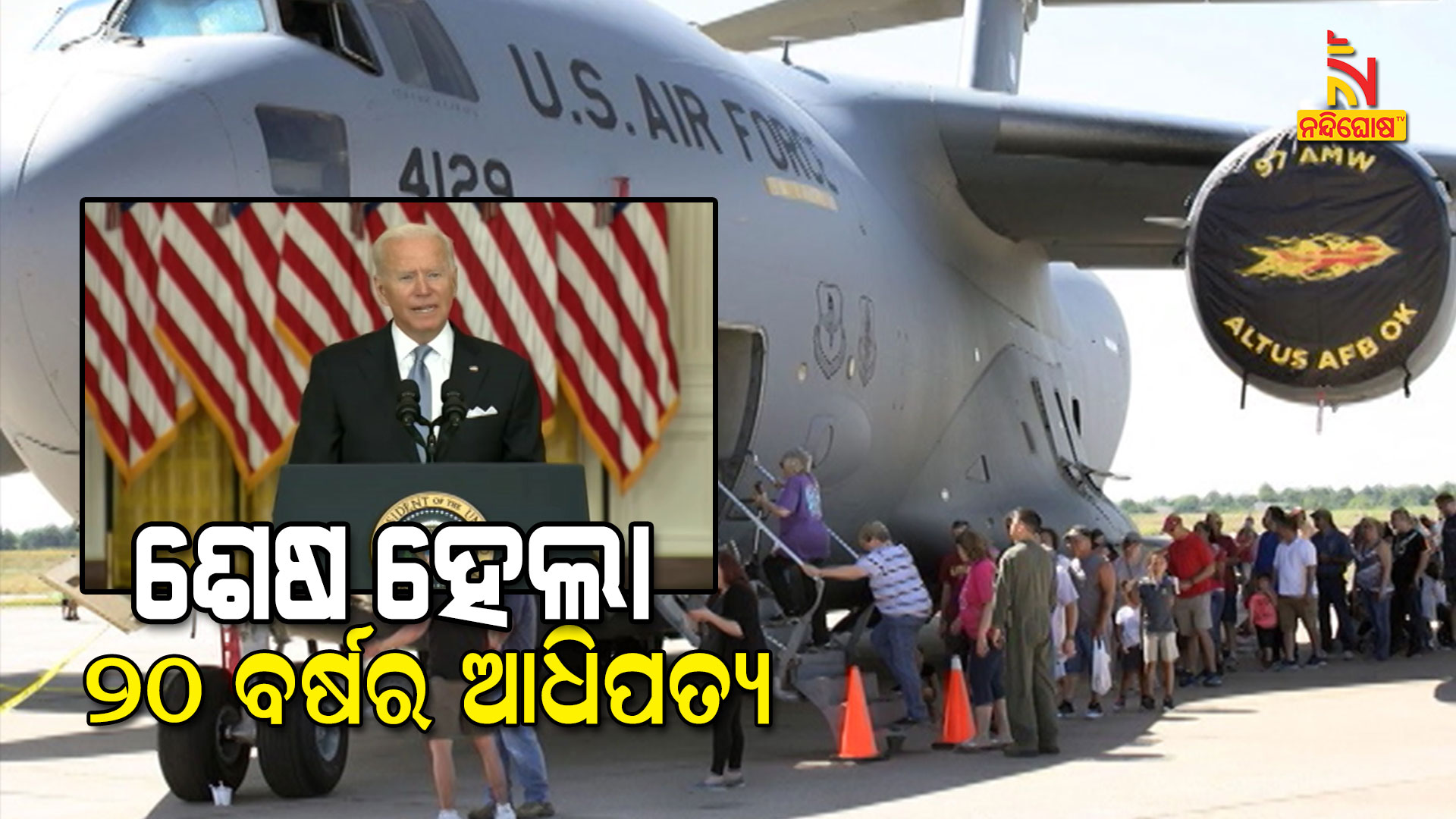 ଗତକାଲି ଠିକ୍ ମଧ୍ୟରାତ୍ରୀରେ ସି୧୭ ସାମରିକ ବିମାନରେ ହମିଦ କାର୍ଜାଇ ଆନ୍ତର୍ଜାତିକ ବିମାନବନ୍ଦରରୁ ଅବଶିଷ୍ଟ ସୈନ୍ୟ ସ୍ୱଦେଶ ଫେରିଯାଇଥିଲେ। ଏହି ବିମାନରେ ମାର୍କିନ ସୈନ୍ୟ, କିଛି କମାଣ୍ଡର, ରାଷ୍ଟ୍ରଦୂତ ରସ୍ ଓ୍ୱିଲସନ ଓ ଅନ୍ୟ କିଛି କର୍ମଚାରୀ ଆଫଗାନ ମାଟି ଛାଡିଥିଲେ। ଏହା ସହ କାବୁଲସ୍ଥିତି ମାର୍କିନ ଦୂତାବାସରେ ମଧ୍ୟ ତାଲା ଝୁଲିବା ଦେଖାଯାଇଥିଲା। ପ୍ରାୟ ୧ ଲକ୍ଷ ୩୦ ହଜାର ଲୋକଙ୍କୁ ଉଦ୍ଧାର କରାଯିବା ସହ ସେମାନଙ୍କୁ ନିଜ ନିଜ ଦେଶକୁ ପଠାଇଦେବା ପରେ ଆମେରିକାର ମିଶନ ଶେଷ ହୋଇଥିଲା। ଶେଷ ପର୍ଯ୍ୟାୟ ସୈନ୍ୟ ପ୍ରତ୍ୟାହାର ପରେ ଆମେରିକା ରାଷ୍ଟ୍ରପତି ଜୋ ବିଡେନ କହିଛନ୍ତି, ୨୦ ବର୍ଷ ପରେ ଆମେରିକାର ଦାୟିତ୍ୱ ଶେଷ ହୋଇଛି।
