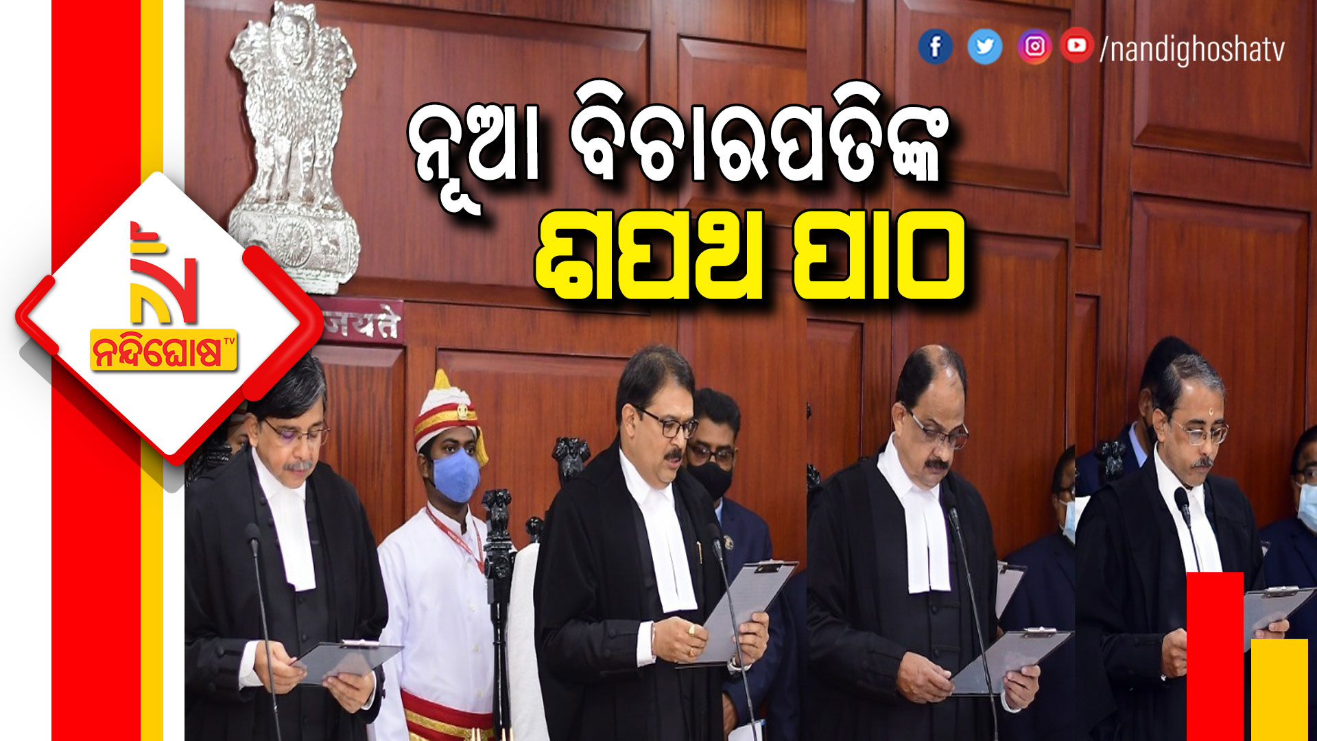 କଟକ: ଓଡିଶା ଉଚ୍ଚ ନ୍ୟାୟାଳୟରେ ଶପଥ ଗ୍ରହଣ କରିଛନ୍ତି ତିନି ନୂଆ ବିଚାରପତି । ଆଇନଜୀବୀ ଭି.ନରସିଂହ, ବିରଜା ପ୍ରସନ୍ନ ଶତପଥୀ ଓ ମୁରାହରି ଶ୍ରୀରମଣ ଓଡ଼ିଶା ହାଇକୋର୍ଟର ବିଚାରପତି ଭାବେ ଶପଥ ଗ୍ରହଣ କରିଛନ୍ତି । ହାଇକୋର୍ଟଙ୍କ ସମ୍ମିଳନୀ କକ୍ଷରେ ଆୟୋଜିତ ଶପଥ ଗ୍ରହଣ ଉତ୍ସବରେ ଡକ୍ଟର ଜଷ୍ଟିସ ଏସ ମୁରଲୀଧର ତିନି ବିଚାରପତିଙ୍କୁ ଶପଥ ପାଠ କରାଇଥିଲେ । କୋଭିଡ କଟକଣା ମଧ୍ୟରେ ସୀମିତ ଅତିଥିଙ୍କୁ ନେଇ ଶପଥ ଗ୍ରହଣ ଉତ୍ସବ ଅନୁଷ୍ଠିତ ହୋଇଥିଲା ।