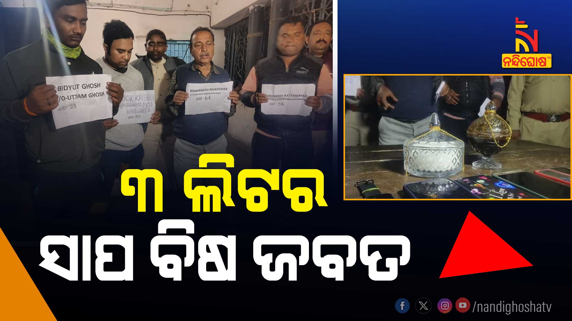 ୩ ଲିଟର ସାପ ବିଷ ନେଇ ଯାଉଥିଲେ, ଚଢ଼ାଉ କଲେ ବନ ବିଭାଗ
