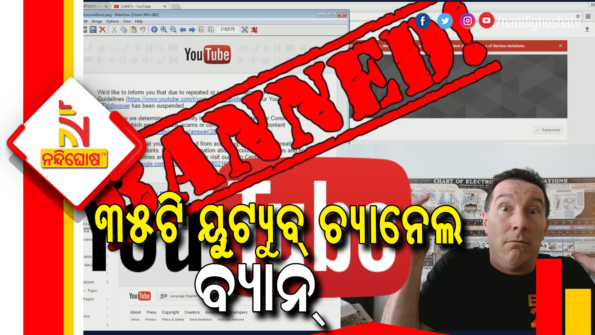 ନୂଆଦିଲ୍ଲୀ: ଦେଶରୁ ପୁଣି ବ୍ୟାନ ହେଲା ୩୫ଟି ୟୁଟ୍ୟୁବ୍ ଚ୍ୟାନେଲ । ଏ ସମସ୍ତ ଚ୍ୟାନେଲକୁ ବନ୍ଦ କଲେ କେନ୍ଦ୍ର ସରକାର । ଦେଶ ବିରୋଧରେ ମିଥ୍ୟା ଓ ଆପତ୍ତିଜନକ ଖବର ପ୍ରସାରଣ ପାଇଁ କାର୍ଯ୍ୟାନୁଷ୍ଠାନ ନିଆଯାଇଛି । ୩୫ଟି ୟୁଟ୍ୟୁବ ଚେନେଲକୁ ବନ୍ଦ କରିଛନ୍ତି ସରକାର । ଏହାସହ ୨ଟି ଟୁଇଟର ଆକାଉଣ୍ଟ, ୨ଟି ଇନଷ୍ଟାଗ୍ରାମ ଆକାଉଣ୍ଟ ସହ ୨ଟି ଓ୍ୱେବସାଇଟ ଓ ଗୋଟିଏ ଫେସବୁକ ଆକାଉଣ୍ଟକୁ ବନ୍ଦ କରିଛନ୍ତି ସରକାର ।