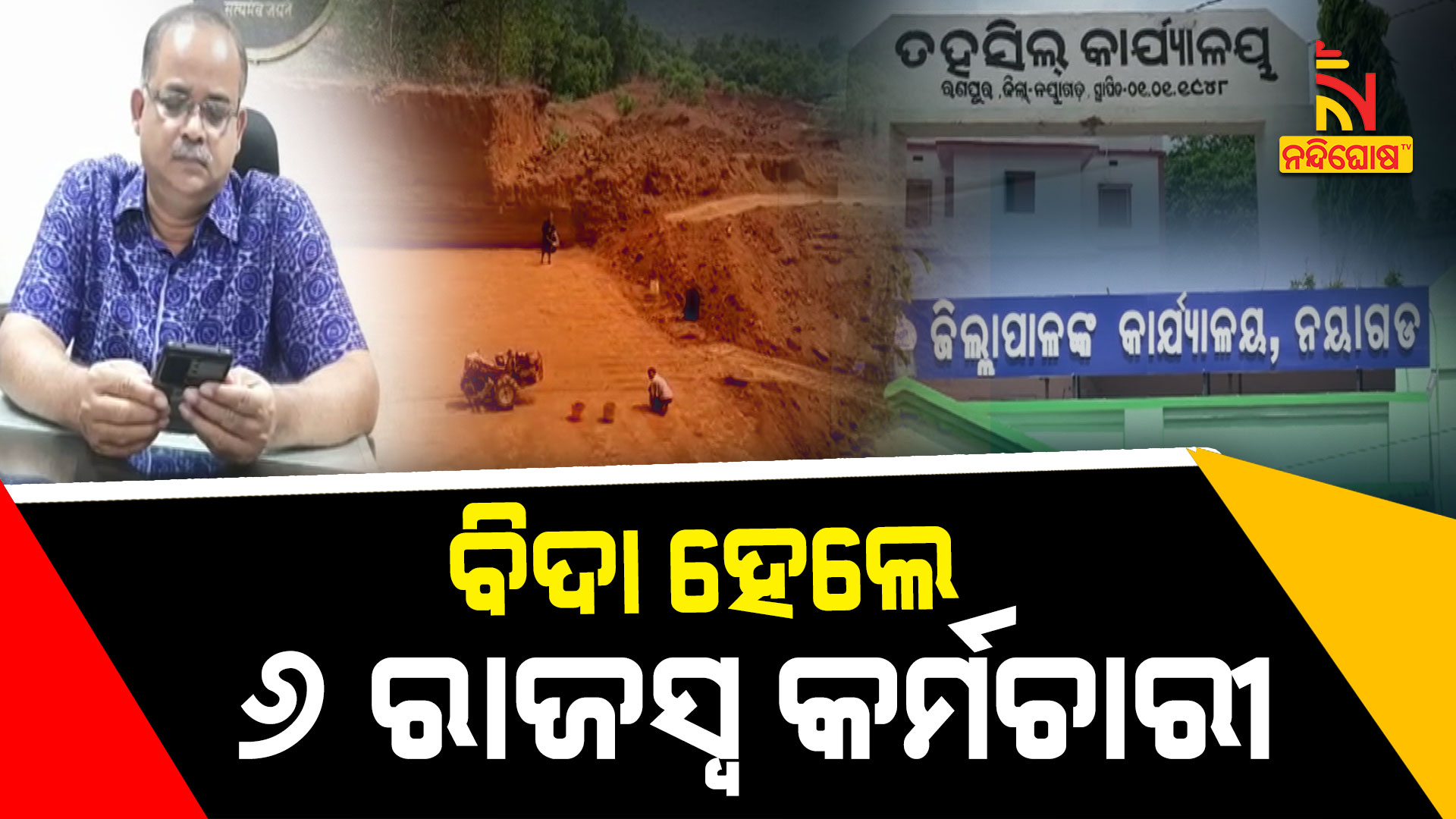 ନୟାଗଡ଼ : ବେଆଇନ ଖଣି ଖନନ ମାମଲାରେ ନୟାଗଡ଼ ଜିଲ୍ଲାପାଳଙ୍କ ବଡ଼ କାର୍ଯ୍ୟାନୁଷ୍ଠାନ । ରାଜସ୍ବ ବିଭାଗର ୬ ଜଣ କର୍ମଚାରୀଙ୍କୁ ନିଲମ୍ବନ କଲେ ନୟାଗଡ଼ ଜିଲ୍ଲାପାଳ । ନିଲମ୍ବିତଙ୍କ ମଧ୍ୟରେ ଅଛନ୍ତି ୨ଜଣ ଆରଆଇ, ୨ଜଣ ସେକ୍ସନ ଅଫିସର, ଜଣେ ସୁପର ଭାଇଜର ଏବଂ ଜଣେ କନିଷ୍ଠ ରାଜସ୍ୱ ସହାୟକ ।