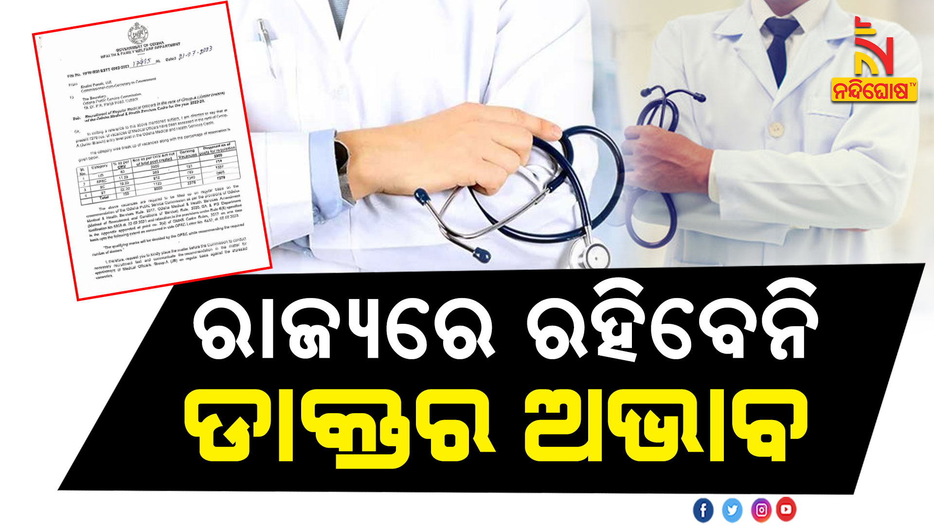ଭୁବନେଶ୍ୱର: ରାଜ୍ୟରେ ରହିବେନି ଡାକ୍ତର ଅଭାବ । ୭ହଜାର ୨୭୬ ଡାକ୍ତର ପଦବୀ ପୂରଣ ପାଇଁ ଆରମ୍ଭ ହୋଇଛି ପ୍ରକ୍ରିୟା । ଏଥିପାଇଁ OPSCକୁ ଚିଠି ଲେଖିଛନ୍ତି ସ୍ବାସ୍ଥ୍ୟ ସଚିବ ଶାଳିନୀ ପଣ୍ଡିତ । ଖାଲି ପଡ଼ିଥିବା ପଦବୀ ପୂରଣ ପାଇଁ OPSC ପଦକ୍ଷେପ ନେବ । ଅଣସଂରକ୍ଷିତ ପ୍ରାର୍ଥୀଙ୍କ ପାଇଁ ୨ ହଜାର ୫୦୦ ପଦବୀ ରହିଥିବାବେଳେ ଅନୁସୂଚିତ ଜନଜାତି ପ୍ରାର୍ଥୀଙ୍କ ପାଇଁ ୨ ହଜାର ୪୬୫ ପଦବୀ ରହିଛି । ସେହିପରି ଅନୁସୂଚିତ ଜାତି ପ୍ରାର୍ଥୀଙ୍କ ପାଇଁ ୧୫୯୭ ପଦବୀ ରହିଛି । SEBC ପ୍ରାର୍ଥୀଙ୍କ ପାଇଁ ୭୧୪ ପଦବୀ ସଂରକ୍ଷିତ ।