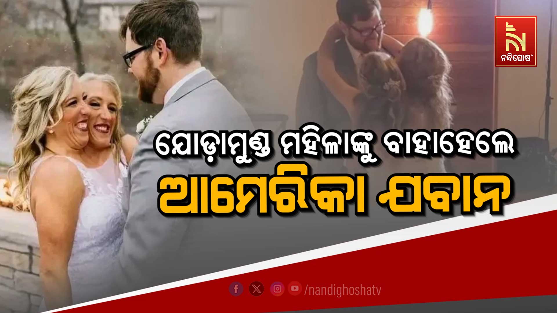 ନନ୍ଦିଘୋଷ ବ୍ୟୁରୋ: ଆମେରିକାର ଏକ ଟିଭି ରିଆଲିଟି ଶୋ’ରୁ ପ୍ରସିଦ୍ଧି ଅର୍ଜନ କରିଥିବା ଏ.ବି ହେନ୍ସଲ ବିବାହ କରିଛନ୍ତି । ଗୋଟିଏ ଶରୀର ଓ ୨ଟି ମସ୍ତିଷ୍କ ଥିବା ହେନ୍ସଲଙ୍କ ବିବାହ ଭିଡିଓ ଏବେ ଖୁବ୍ ଭାଇରାଲ ହେବାରେ ଲାଗିଛି। ତେବେ ତାଙ୍କ ବିବାହ ୩ ବର୍ଷ ପୂର୍ବେ ଅତି ଗୋପନୀୟ ଭାବେ ହୋଇଥିଲା। ଆମେରିକା ସେନାର ଭେଟେରାନ ଜୋସ୍ ବାର୍ଲିଙ୍ଗଙ୍କୁ ବିବାହ କରିଥିଲେ ଏ.ବି ହେନ୍ସଲ । ଜୀବନସାଥୀଙ୍କ ସହ ଡ୍ୟାନ୍ସ କରୁଥିବା ଭିଡିଓ ସୋସିଆଲ ମିଡିଆରେ ନିଜ ଖୁବ୍ ଭାଇରାଲ ହେଉଛି। ଭିିଡିଓରେ ଓ୍ବେଡିଂ ଆଉଟଫିଟରେ ଡ୍ୟାନ୍ସ କରୁଥିବା ନଜର ଆସିଛନ୍ତି ହେନ୍ସଲ । ଭିଡିଓରେ ୨ଟି ମସ୍ତିଷ୍କ ଥିବା ଏବି ହେନ୍ସଲ ଖୁବ୍ ଖୁସି ଥିବା ଦେଖିବାକୁ ମିଳିଛି। ଗୋଟିଏ ଶରୀର ଓ ୨ଟି ମସ୍ତିଷ୍କ ଥିବାରୁ ଜଣଙ୍କ ନାମ ଏବି ହେନ୍ସଲ ଓ ଅନ୍ୟ ଜଣଙ୍କ ନାମ ବ୍ରିଟନୀ ହେନ୍ସଲ ରହିଛି। ୧୯୯୬ରେ ଆମେରିକାର ଏକ ଟିଭି ରିଆଲିଟି ଶୋ’ରେ ସାମିଲ ହୋଇଥିଲେ ଏବି ହେନ୍ସଲ। ସେତେବେଳେ ଏହି ଯାଆଳାଁ ବ୍ୟକ୍ତିତ୍ବଙ୍କୁ ଦେଖି ସମସ୍ତେ ଚକିତ ହେବା ସହ ତାଙ୍କ ସର୍ଭାଇଭାଲକୁ ନେଇ ପ୍ରଶ୍ନ ଉଠାଇଥିଲେ। ୧୯୯୦ରେ ଜନ୍ମ ଗ୍ରହଣ କରିଥିବା ଏବି ହେନ୍ସଲ ଡାଇସଫେଲସ ରୋଗରେ ପୀଡିତ ଥିବା କୁହାଯାଉଛି।