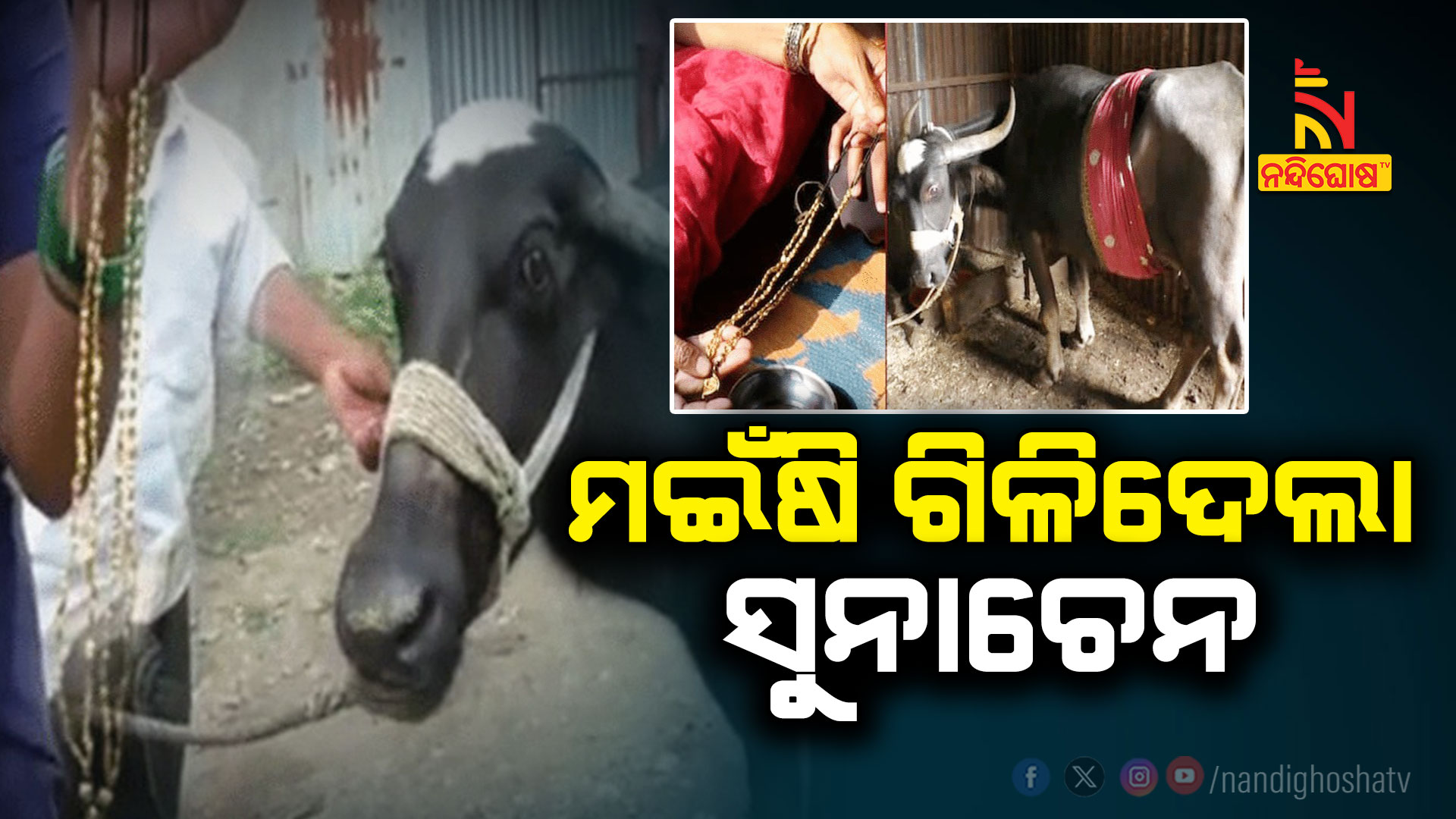 ଚାରା ସହ ସୁନା ଚେନକୁ ଖାଇନେଇଥିଲା ମଇଁଷି । ପ୍ରଥମେ ତ ପରିବାରର ସଦସ୍ୟ ଚେନ୍ ଚୋରି ହୋଇଯାଇଥିବା ଅନୁମାନ କରିଥିଲେ । ହେଲେ ପରେ ମଇଁଷି ଗିଳି ଦେଇଥିବା ସେମାନେ ଅନୁମାନ କରିଥିଲେ । ପଶୁ ଚିକିତ୍ସକ ଧାତୁ ଡିଟେକ୍ଟର ଯୋଗେ ମଇଁଷି ପେଟରେ କୌଣସି ବସ୍ତୁ ଥିବା ଜାଣିବାକୁ ପାଇଥିଲେ । ଏହାପରେ ସେ ଅସ୍ତ୍ରୋପଚାର କରି ମଇଁଷି ପେଟକୁ ସୁନା ଚେନ କାଢିଥିଲେ । ମଇଁଷି ଓ ସୁନାଚେନ ସୁରକ୍ଷିତ ପାଇ ଖୁସିରେ ଚାଷୀ ପରିବାର ।