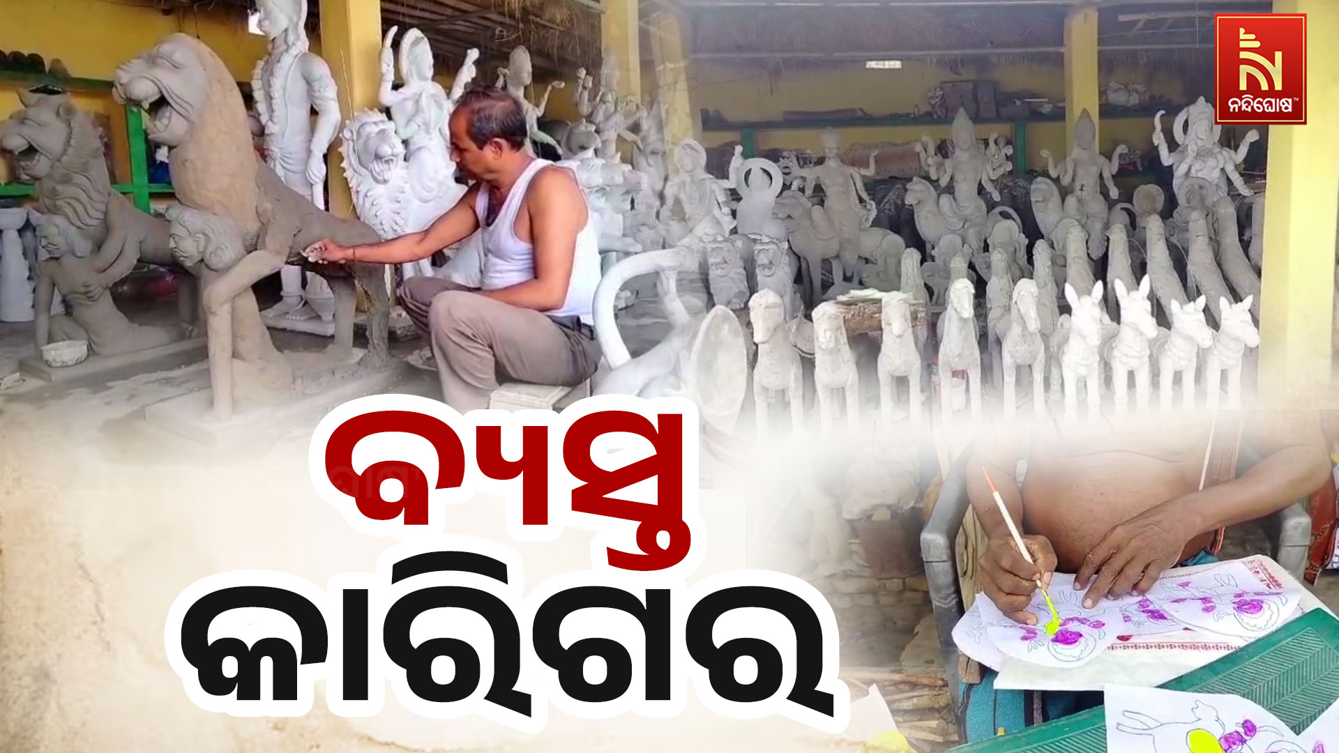 ଅନୁଗୁଳ : ବିଭିନ୍ନ ମୂର୍ତ୍ତି ସାଙ୍ଗକୁ ମୁଖା ପ୍ରସ୍ତୁତିରେ ନିମଗ୍ନ କାରିଗର । ତୁଳୀରେ ରଙ୍ଗଦେଇ ନିର୍ମାଣ କରୁଛନ୍ତି ଜୀବନ୍ତ କଳାକୃତି । ଦଣ୍ଡଯାତ୍ରାରେ ବ୍ଯବହୃତ ସାମଗ୍ରୀ ଓ ସରଞ୍ଜାମ ପ୍ରସ୍ତୁତିରେ ଲାଗିପଡିଛନ୍ତି କାରିଗର । ଦିନରାତି ଏକ କରି ସରଞ୍ଜାମ ତିଆରିରେ ଲାଗିପଡିଛନ୍ତି ଅନୁଗୁଳ ଜିଲ୍ଲା ବନ୍ତଳା ଲାଛବନ୍ଧ ଗାଁର ନଗେନ ମହାପାତ୍ରଙ୍କ ପରିବାର । ମା’ କାଳୀଙ୍କ ମୁଖା ସହ ଅନ୍ୟାନ୍ୟ ଚରିତ୍ର ପାଇଁ ଷଣ୍ଢ, ବାଘ, ସିଂହ, ଭାଲୁ, ଚଢ଼େୟା ମୁଖା ଓ ନାବକେଳି ପାଇଁ ଧର୍ମଡଙ୍ଗା ତିଆରି କରୁଛନ୍ତି ।