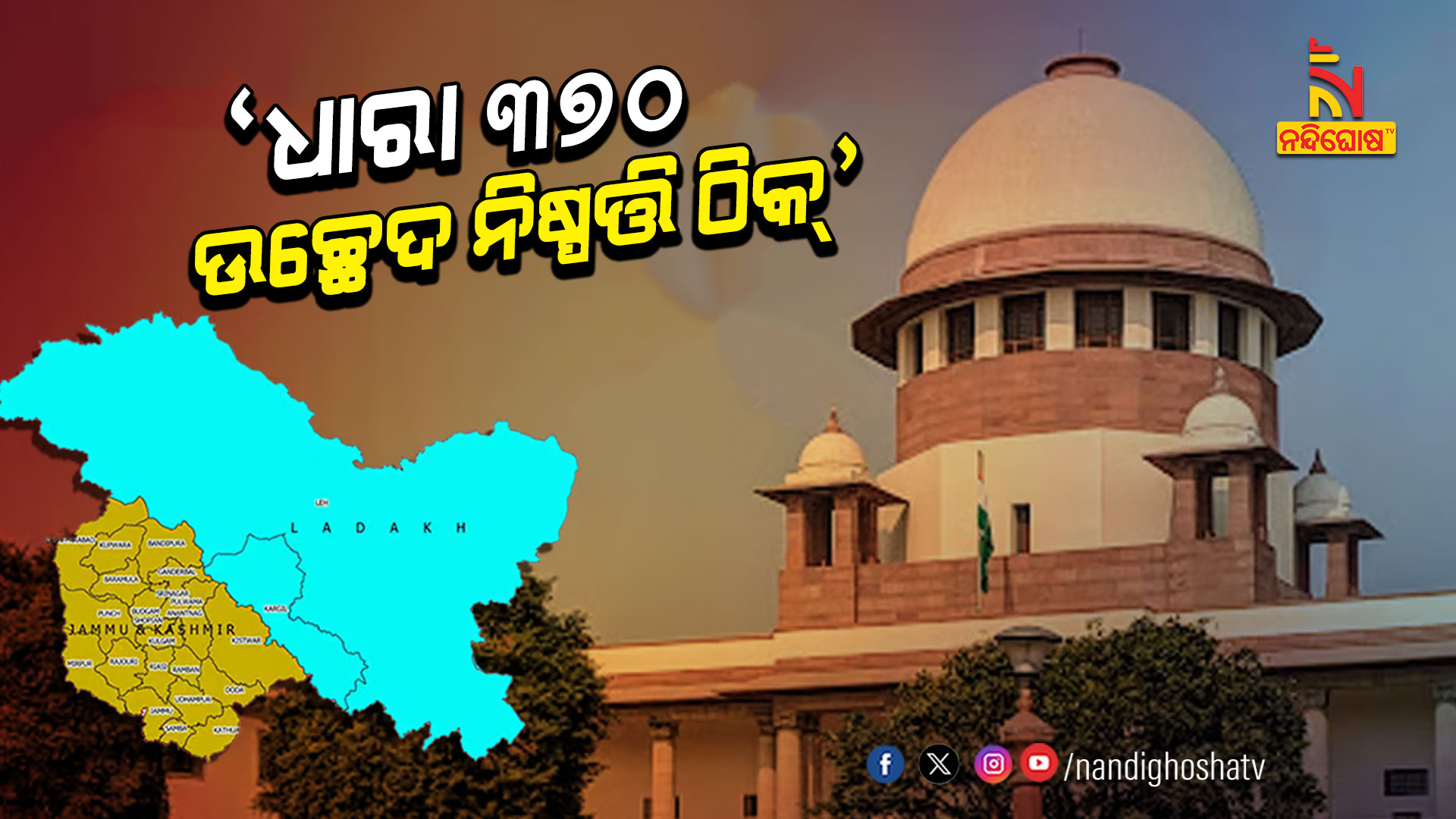 ଲଦାଖ କେନ୍ଦ୍ରଶାସିତ ଅଚଳ ଭାବେ ସ୍ଥିତି ବଜାୟ ରହିବ ।ଜାମ୍ମୁ କାଶ୍ମୀରରୁ ଧାରା ୩୭୦ ଉଚ୍ଛେଦ ପ୍ରସଙ୍ଗରେ ସୁପ୍ରିମକୋର୍ଟଙ୍କ ୫ ଜଣିଆ ଖଣ୍ଡପୀଠ ଏହି ରାୟ ଶୁଣାଇଛନ୍ତି । ପ୍ରଧାନ ବିଚାରପତି ଜଷ୍ଟିସ ଡିୱାଇ ଚନ୍ଦ୍ରଚୂଡଙ୍କ ଅଧ୍ୟକ୍ଷତାରେ ଏହି ରାୟ ଆସିଛି । ୨୦୧୯ରେ ଧାରା ୩୭୦ ଉଚ୍ଛେଦ ବିରୋଧରେ ଦାଖଲ ହୋଇଥିବା ବିଭିନ୍ନ ଆବେଦନ ଉପରେ ସର୍ବୋଚ୍ଚ କୋର୍ଟ ଏହି ରାୟ ପ୍ରଦାନ କରିଛନ୍ତି । ସିଜେଆଇ ଜଷ୍ଟିସ୍ ଡି.ଓ୍ବାଇ ଚନ୍ଦ୍ରଚୂଡ଼ଙ୍କ ଅଧ୍ୟକ୍ଷତାରେ ୫ ଜଣିଆ ଖଣ୍ଡପୀଠ ମାମଲାର ରାୟ ପ୍ରକାଶ କରିଛନ୍ତି । ଗତ ଅଗଷ୍ଟ ମାସରେ ସୁପ୍ରିମକୋର୍ଟ ମାମଲାର ମାରାଥନ ଶୁଣାଣି କରିଥିଲେ । ପ୍ରଧାନ ବିଚାରପତି ଡି. ଓ୍ବାଇ. ଚନ୍ଦ୍ରଚୁଡ଼ଙ୍କ ଅଧ୍ୟକ୍ଷତାରେ ଜଷ୍ଟିସ୍ ସଞ୍ଜୟ କିଶାନ କୌଲ, ଜଷ୍ଟିସ୍ ସଞ୍ଜୀବ ଖାନ୍ନା, ଜଷ୍ଟିସ ବି.ଆର. ଗଓ୍ବାଇ ଏବଂ ଜଷ୍ଟିସ୍ ସୂର୍ଯ୍ୟ କାନ୍ତଙ୍କୁ ନେଇ ଗଠିତ ପାଞ୍ଚ ଜଣିଆ ସମ୍ବିଧାନ ବେଞ୍ଚ ୧୬ ଦିନ ଧରି ସମସ୍ତ ପକ୍ଷଙ୍କ ଯୁକ୍ତି ଶୁଣିବା ପରେ ସେପ୍ଟେମ୍ବର ୫ତାରିଖରେ ରାୟ ସଂରକ୍ଷିତ ରଖିଥିଲେ ।