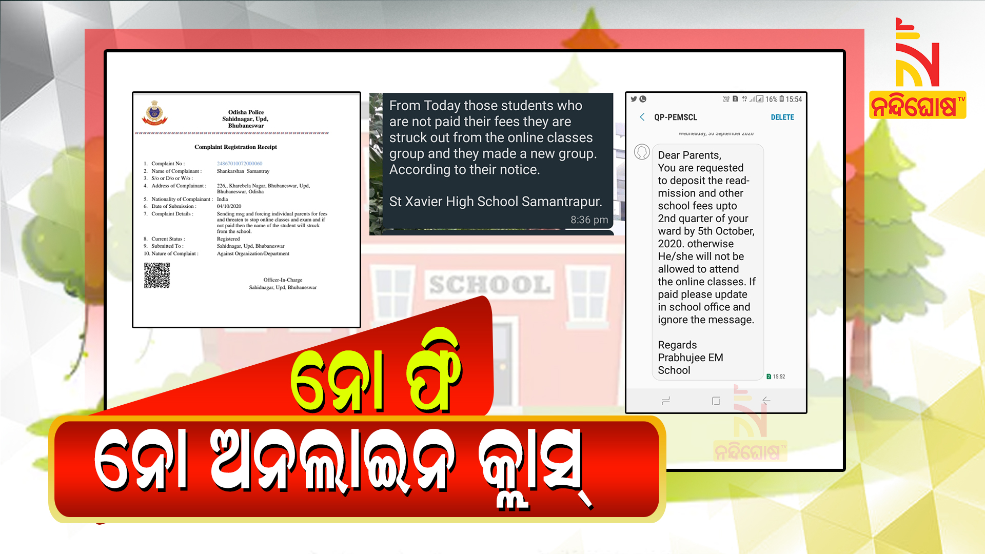 ବର୍ତ୍ତମାନର ପରିସ୍ଥିତିରେ କୌଣସି ବିଦ୍ୟାଳୟ ଛାତ୍ରଛାତ୍ରୀଙ୍କୁ ଅନଲାଇନ କ୍ଲାସରୁ ବଞ୍ଚିତ କରିପାରିବେ ନାହିଁ ବୋଲି ହାଇକୋର୍ଟ ପୂର୍ବରୁ କହିଥିଲେ । କିନ୍ତୁ ହାଇକୋର୍ଟଙ୍କୁ ଅବମାନନା କରି ବହୁ ସ୍କୁଲ ଏଭଳି ନିଷ୍ପତ୍ତି ନେଉଥିବା ଅଭିଯୋଗ ହୋଇଛି