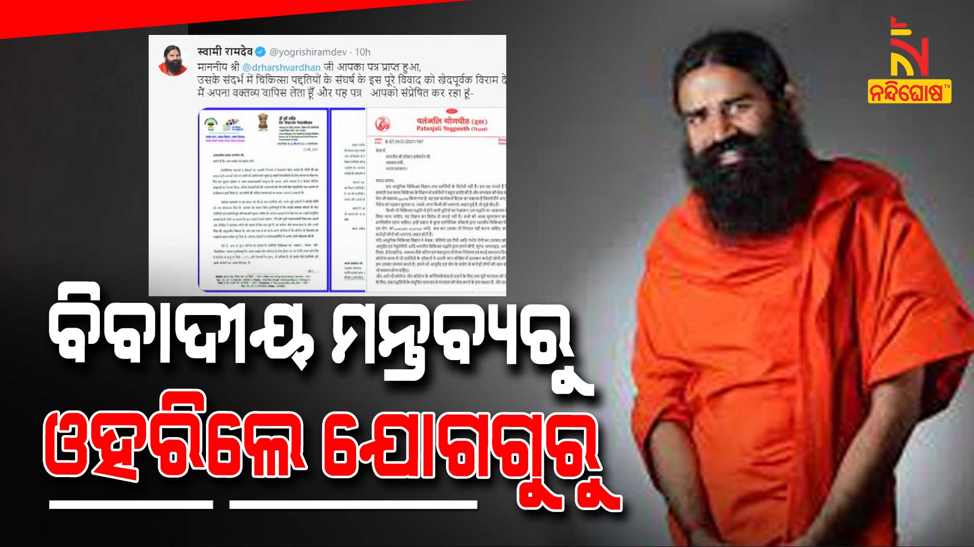 ନୂଆଦିଲ୍ଲୀ: ବିବାଦୀୟ ମନ୍ତବ୍ୟରୁ ଓହରିଲେ ଯୋଗଗୁରୁ ବାବା ରାମଦେବ । ଆଧୁନିକ ଚିକିତ୍ସା ପଦ୍ଧତିକୁ ନେଇ ଦେଇଥିବା ବିବାଦୀୟ ମନ୍ତବ୍ୟକୁ ରାମଦେବ ପ୍ରତ୍ୟାହାର କରିନେଇଛନ୍ତି। କେନ୍ଦ୍ର ସ୍ୱାସ୍ଥ୍ୟ ମନ୍ତ୍ରାଳୟର ଚିଠି ପରେ ବିବାଦୀୟ ବିବୃତ୍ତି ପ୍ରତ୍ୟାହାର କରିଛନ୍ତି ବାବା । ଏ ନେଇ ସେ କେନ୍ଦ୍ର ସ୍ୱାସ୍ଥ୍ୟ ମନ୍ତ୍ରୀ ଡା. ହର୍ଷବର୍ଦ୍ଧନଙ୍କୁ ଟ୍ୱିଟ୍ କରି କହିଛନ୍ତି, ଏଲୋପାଥୀକୁ ନେଇ ଦେଇଥିବା ବିବୃତ୍ତିକୁ ମୁଁ ପ୍ରତ୍ୟାହାର କରୁଛି । ଦେଇଥିବା ବିବୃତ୍ତି ପାଇଁ ମୁଁ ଅନୁତପ୍ତ ବୋଲି ରାମଦେବ ଟ୍ୱିଟ୍ କରିଛନ୍ତି । ଏଲୋପାଥୀ ଚିକିତ୍ସାକୁ ଏକ ଦେବାଳିଆ ସାଇନ୍ସ ବୋଲି କହିଥିଲେ ରାମଦେବ । ଏଲୋପାଥି ଖାଇ ଲକ୍ଷାଧିକ ଲୋକଙ୍କ ମୃତ୍ୟୁ ହୋଇଛି । ରେମଡିସିଭିର ଓ ଫାଭି ଫ୍ଲୁ ଭଳି ଔଷଧକୁ ମଧ୍ୟ ରାମଦେବ ନିନ୍ଦା କରିଥିଲେ । ଏହାକୁ ନେଇ ରାମଦେବଙ୍କ ବିରୋଧରେ କାର୍ଯ୍ୟାନୁଷ୍ଠାନ ପାଇଁ ଆଇଏମଏ ଦାବି କରିଥିବା ବେଳେ ମନ୍ତବ୍ୟ ପ୍ରତ୍ୟାହାର କରିବାକୁ ଚିଠି ଲେଖିଥିଲା କେନ୍ଦ୍ର ସ୍ୱାସ୍ଥ୍ୟ ମନ୍ତ୍ରାଳୟ ।