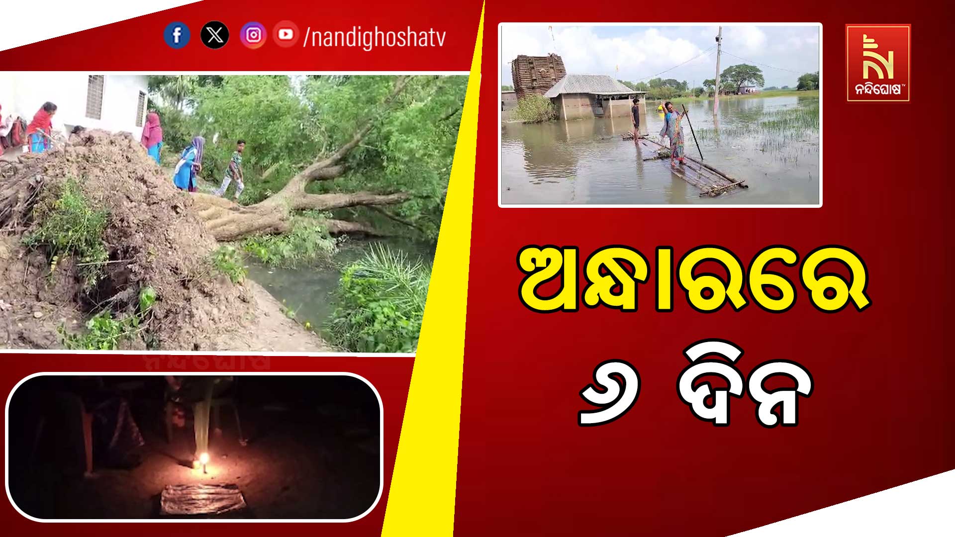 ନନ୍ଦିଘୋଷ ବ୍ୟୁରୋ: ୬ଦିନ ହେବ ଅନ୍ଧାରରେ ବିତୁଛି ଜୀବନ। ବାସୁଦେବପୁରରେ ଦାନାର ଗଭୀର ପ୍ରଭାବ ଦେଖିବାକୁ ମିଳିଛି। ବାତ୍ଯା ପବନରେ ବଡ ବଡ ଗଛ ପଡି ବିଦ୍ଯୁତ ସେବା ଠପ ହୋଇଯାଇଥିବା ବେଳେ ଡିବିରି ଆଲୁଅରେ ହେଉଛି ନିତ୍ଯାକାର୍ଯ୍ୟ। ଡିବିରି ଆଲୁଅରେ ରୋଷେଇ ଆଉ ପାଠ ପଢା ହେଉଛି। ଚାରିଆଡେ ପାଣି ଥିବାରୁ ବାଉଁଶ ଭେଳା ସାହାଯ୍ୟରେ ଯିବା ଆସିବା କରୁଛନ୍ତି ଲୋକେ।