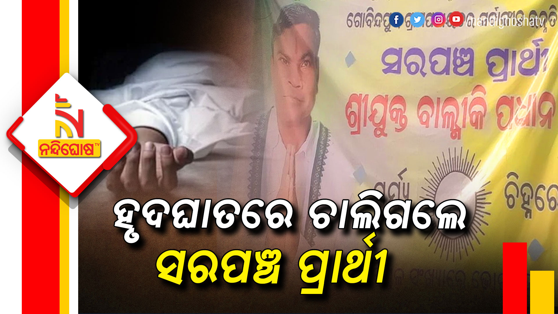 ସୂଚନା ଅନୁସାରେ ଗତକାଲି ବିଳମ୍ବିତ ରାତିରେ ସରପଞ୍ଚ ପ୍ରାର୍ଥୀ ବାଲ୍ମୀକି ପ୍ରଧାନ ଛାତିରେ ଯନ୍ତ୍ରଣା ଅନୁଭବ କରିଥିଲେ । ଯାହା ଫଳରେ ତାଙ୍କୁ ପରିବାର ଲୋକ ଏକ ଘରୋଇ ଡାକ୍ତରଖାନାକୁ ଚିକିତ୍ସା ପାଇଁ ନେଇଥିଲେ। ମାତ୍ର ସେଠାରେ ଚିକିତ୍ସିତ ଅବସ୍ଥାରେ ତାଙ୍କର ମୃତ୍ୟୁ ହୋଇଯାଇଥିଲା। ତେବେ ଆଜି ତାଙ୍କର ମୃତ ଦେହ ଗୋବିନ୍ଦପୁର ଗ୍ରାମକୁ ଆଣିବା ପରେ ଗ୍ରାମରେ ଶୋକର ଛାୟା ଖେଳିଯାଇଛି । ବରଗଡ଼ ଜିଲ୍ଲା ଭଟଲି ବ୍ଲକ କେଲେଣ୍ଡାପାଳି ପଞ୍ଚାୟତର ସରପଞ୍ଚ ପ୍ରାର୍ଥୀଙ୍କ ମଧ୍ୟ ଦୁଇଦିନ ତଳେ ମୃତ୍ୟୁ ହୋଇଯାଇଥିଲା । ତେବେ ଏହି ପଞ୍ଚାୟତ ନିର୍ବାଚନରେ ଉଭୟ ପଞ୍ଚାୟତରେ ସରପଞ୍ଚ ପ୍ରାର୍ଥୀ ପାଇଁ ମତଦାନ ପ୍ରକ୍ରିୟା ବାତିଲ ହୋଇଛି ।