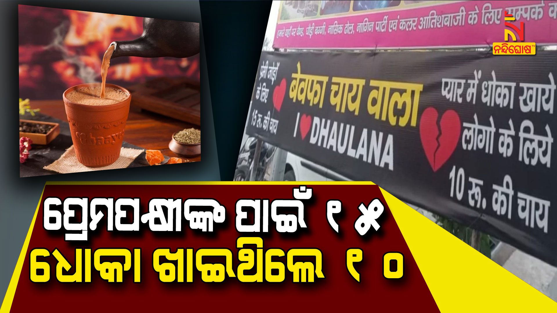 ହାପୁଡ ଜନପଦର ଧୌଲଲାନାରେ ଖୋଲିଛି ଏହି ଭିନ୍ନ ଚା’ ଦୋକାନ  । ପ୍ରେମରେ ପ୍ରତାରଣା ପାଇଥିବା ବ୍ୟକ୍ତିଙ୍କ ପାଇଁ କିନ୍ତୁ ବ୍ୟବସାୟୀଙ୍କ ଅଜବ ଦରଦ  । ପ୍ରେମରେ ଧୋକା ଖାଇଥିବା ଯୁବକ  ଯୁବତୀଙ୍କୁ ବ୍ୟବସାୟୀ ଦେଉଛନ୍ତି ସ୍ପେଶାଲ ଅଫର୍‌  । ଆଜ୍ଞା ହଁ ଯଦି ଆପଣ ପ୍ରେମରେ ଧୋକା ଖାଇଛନ୍ତି ତେବେ କେବଳ ୧୦ ଟଙ୍କା ଦେଇ ଆପଣ ଚା’ ପିଇପାରିବେ  । କିନ୍ତୁ ଯଦି ଆପଣ ପ୍ରେମିକ ବା ପ୍ରେମିକାଙ୍କ ସହ ଏଠାକୁ ଚା ପିଇବାକୁ ଆସନ୍ତି ଏଥିପାଇଁ ୧୫ ଟଙ୍କା ଦେବାକୁ ପଡିଥାଏ