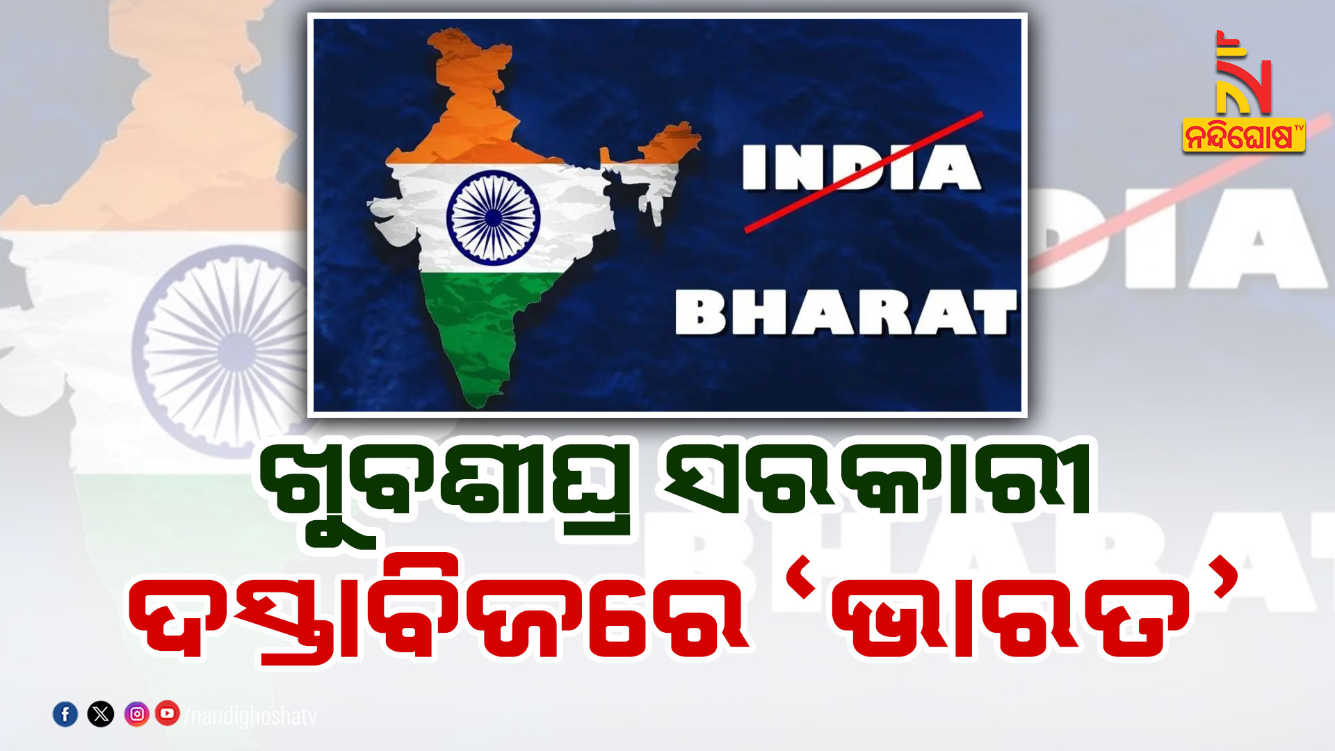 ନୂଆଦିଲ୍ଲୀ: କେନ୍ଦ୍ର ସରକାରଙ୍କ ଯୋଜନା ଏବଂ ସରକାରୀ କାର୍ଯ୍ୟକ୍ରମ ଠାରୁ ଆରମ୍ଭ କରି ଜାତୀୟ ତଥା ଆନ୍ତର୍ଜାତୀୟ ନିମନ୍ତ୍ରଣ ତଥା ଆନୁସଙ୍ଗିକ କାଗଜପତ୍ର ପର୍ଯ୍ୟନ୍ତ ସରକାରୀ ଦଲିଲରେ ‘ଭାରତ’ ନାମ ଖୁବଶୀଘ୍ର ଦେଖିବାକୁ ମିଳିବ । ଏହା କୌଣସି ବି ତାରିଖରୁ ଲାଗୁ ହୋଇପାରେ । ଏନେଇ ଖୁଲାସା କରିଛନ୍ତି କେନ୍ଦ୍ର ସରକାରଙ୍କ ଜଣେ ବରିଷ୍ଠ ଅଧିକାରୀ । ସେ ଦର୍ଶାଇଛନ୍ତି ଯେ ‘କର୍ମଯୋଗୀ ଭାରତ’ ପରି ଯୋଜନା ଏବଂ କାର୍ଯ୍ୟକ୍ରମର ଅଂଶ ଭାବରେ ସରକାରୀ ଦସ୍ତାବିଜରେ ‘ଭାରତ’ ବ୍ୟବହାର ହୋଇସାରିଛି।