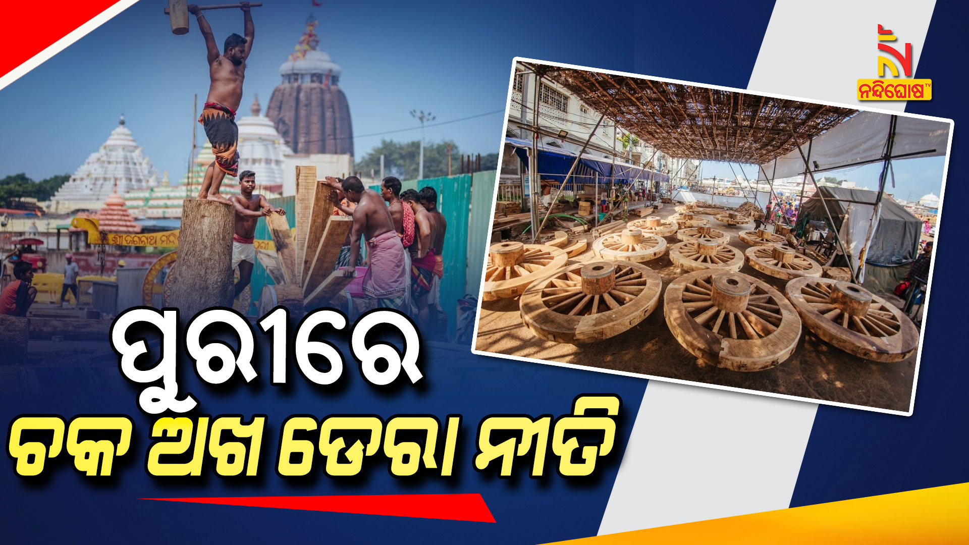 ପୁରୀ: ଭଉଁରୀ ତିଥି । ତିନି ରଥର ଦୁଇ ଦୁଇଟି ଚକରେ ଗୋଟିଏ ଅଖ ଯୋଖା ହୋଇ ଡେରା ନୀତି ହୋଇଛି । ପ୍ରଥମେ ତାଳଧ୍ବଜ ରଥର ଚକ ଅଖ ଯୋଖା ହୋଇଛି । ପରେ ନନ୍ଦିଘୋଷ ଏବଂ ଶେଷରେ ଦର୍ପଦଳନ ରଥର ଚକ ଅଖ ଡେରା ନୀତି ସମ୍ପନ୍ନ ହୋଇଛି । ଭୋଇ ସେବକମାନେ ଏହି ନୀତି କରିଛନ୍ତି । ଚକ ଅଖ ଡେରା ନୀତି ପାଇଁ ସକାଳ ଧୂପ ପରେ ଶ୍ରୀମନ୍ଦିରରୁ ଆଜ୍ଞାମାଳ ଆସିଥିଲା । ରଥଖଳାରେ ସବୁ ରଥର ଚକ ଅଖରେ ଆଜ୍ଞାମାଳ ଲଗା ଯାଇଥିଲା । ଭୋଇ ସେବକଙ୍କ ଦ୍ବାରା ଚକ ଅଖ ଯୋଖା ପରେ ଡେରା ହୋଇଛି । ପୋଲିସ ପ୍ରଶାସନର ଉପସ୍ଥିତିରେ ଚକ ଅଖ ଡେରା ନୀତି ସମ୍ପନ୍ନ ହୋଇଛି ।