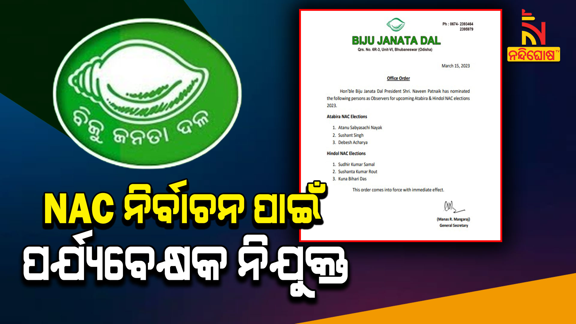 ଭୁବନେଶ୍ୱର: ଆସନ୍ତା ଏପ୍ରିଲ ୩ରେ ବରଗଡ ଜିଲ୍ଲା ଅତାବିରା ଓ ଢେଙ୍କାନାଳ ଜିଲ୍ଲା ହିନ୍ଦୋଳ ବିଜ୍ଞାପିତ ଅଂଚଳ ପରିଷଦ ନିର୍ବାଚନ । ଏହି ଦୁଇଟି ଏନଏସି ନିର୍ବାଚନ ପରିଚାଳନା ପାଇଁ ପର୍ଯ୍ୟବେକ୍ଷକ ଘୋଷଣା କରିଛନ୍ତି ବିଜେଡି ସୁପ୍ରିମୋ ନବୀନ ପଟ୍ଟନାୟକ । ଅତାବିରା ପାଇଁ ଅତନୁ ସବ୍ୟସାଚୀ ନାୟକ , ସୁଶାନ୍ତ ସିଂ, ଦେବେଶ ଆଚାର୍ଯ୍ୟଙ୍କୁ ନିଯୁକ୍ତ କରିଛନ୍ତି ନବୀନ । ସେହଭିଳି ହିନ୍ଦୋଳ ପାଇଁ ସୁଧୀର ସାମଲ, ସୁଶାନ୍ତ କୁମାର ରାଉତ, କୁନା ବିହାରୀ ଦାସଙ୍କୁ ଦାୟିତ୍ବ ପ୍ରଦାନ କରାଯାଇଛି । ଏନେଇ ସୂଚନା ଦେଇଛନ୍ତି ବିଜେଡି ସାଧାରଣ ସମ୍ପାଦକ ମାନସ ରଞ୍ଜନ ମଙ୍ଗରାଜ । ଗତକାଲି ଉଭୟ ଏନଏସି ନିର୍ବାଚନ ପାଇଁ ବିଜେଡି ପ୍ରାର୍ଥୀ ନାମାଙ୍କନ ଭରିଛନ୍ତି ।