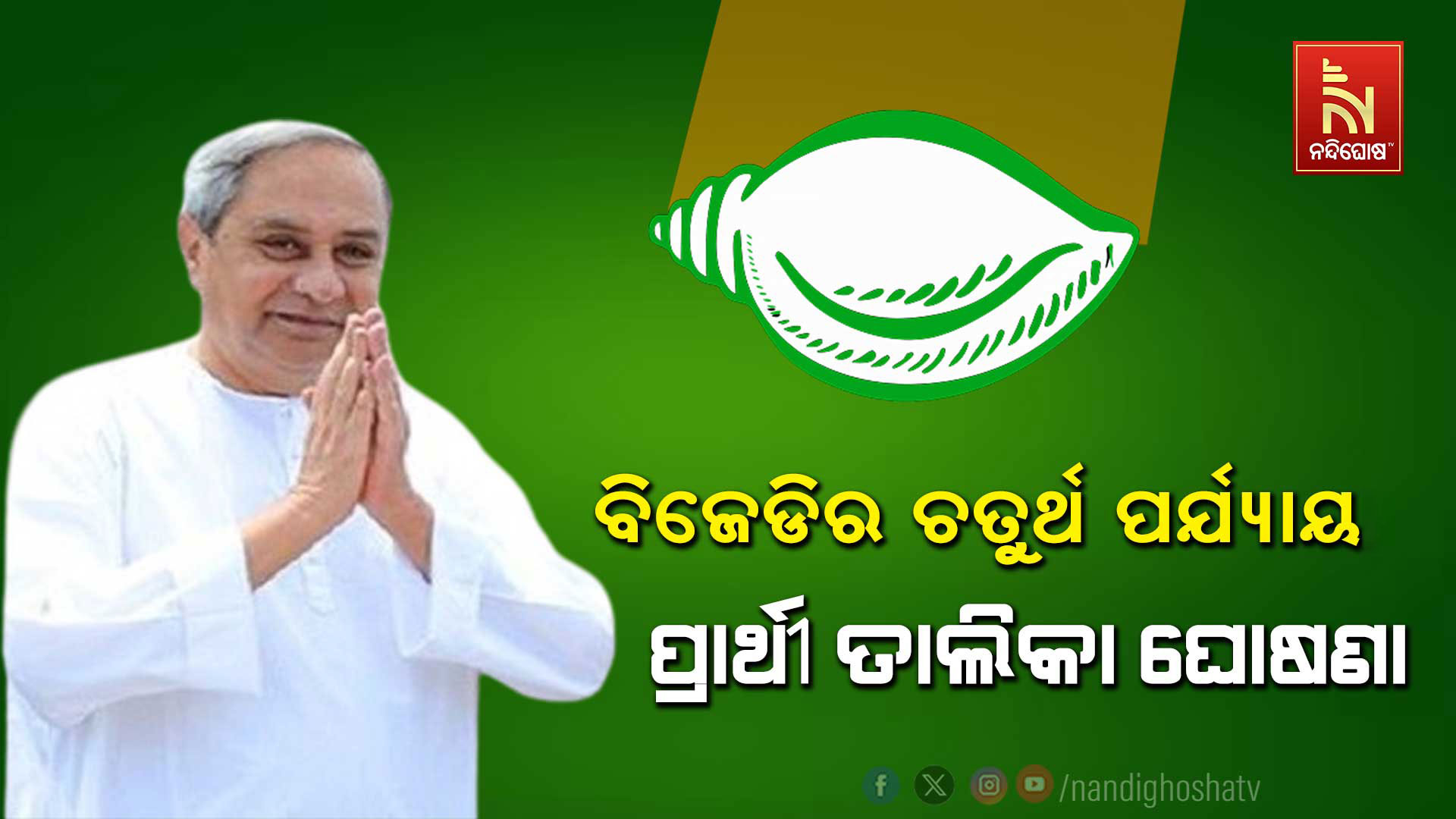 ନନ୍ଦିଘୋଷ ବ୍ୟୁରୋ: ପ୍ରକାଶ ପାଇଲା ବିଜେଡିର ଚତୁର୍ଥ ପର୍ଯ୍ୟାୟ ପ୍ରାର୍ଥୀ ତାଲିକା । ୯ ଜଣ ବିଧାନସଭା ପ୍ରାର୍ଥୀ ଓ ବାଲେଶ୍ବର ଲୋକସଭା ପ୍ରାର୍ଥୀ ନାଁ ଘୋଷଣା କଲେ ବିଜେଡି ସୁପ୍ରିମୋ ନବୀନ ପଟ୍ଟନାୟକ । ନଜର ପକାନ୍ତୁ କାହାକୁ କେଉଁ ଆସନ କାହାକୁ ମିଳିଲା ଟିକେଟ ।