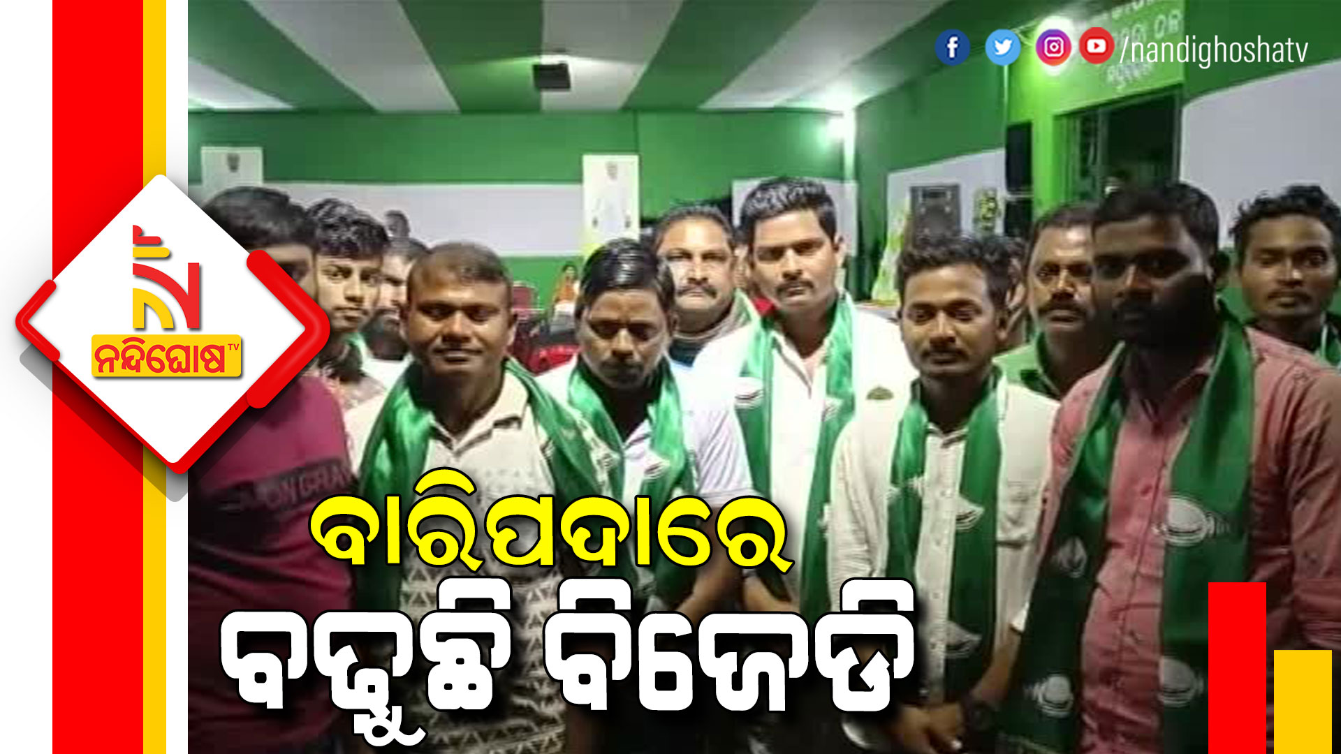 ବାରିପଦା: ମୟୂରଭଞ୍ଜରେ ଆହୁରି ସଶକ୍ତ ହେଉଛି ବିଜେଡି । ବିଭିନ୍ନ ଦଳର କର୍ମୀ ଏବେ ବିଜେଡି ମୁହାଁ ହେଉଛନ୍ତି । ଏନେଇ ବାରିପଦାରେ ଜିଲ୍ଲା କାର୍ଯ୍ୟାଳୟରେ ଅନୁଷ୍ଠିତ ହୋଇଯାଇଛି ବିରାଟ ମିଶ୍ରଣ ପର୍ବ । ଖୁଣ୍ଟା ବ୍ଲକର ଜୋନ ୧୩ର ବିଜେପିର ଜିଲ୍ଲାପରିଷଦ ସଭ୍ୟ ଭି.ଏସ ଜ୍ୟୋତି ସଂଗ୍ରାମ, କଂଗ୍ରେସର ଯୁବ ନେତା ସଞ୍ଜୀବ କୁମାର ସାହୁ ଓ ତାଙ୍କ ଶତାଧିକ ସମର୍ଥକଙ୍କ ସହ ଆଜି ବିଧିବଦ୍ଧ ଭାବେ ବିଜେଡ଼ିରେ ସାମିଲ ହୋଇଛନ୍ତି ।