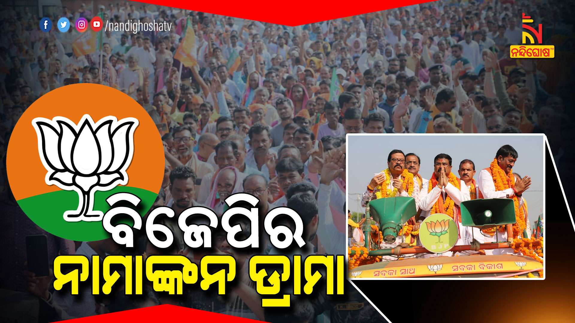 ବରଗଡ଼: ପଦମପୁରରେ ବିଜେପିର ନାମାଙ୍କନ ଚାଲ୍ । ଫସଲ ବୀମା ଟଙ୍କାକୁ ନେଇ ବ୍ୟାକଫୁଟରେ ଥିବା ଭାରତୀୟ ଜନତା ପାର୍ଟି ଆଜି ନୂଆ ଡ୍ରାମା କରିଛି ପଦମପୁରରେ । କେନ୍ଦ୍ରମନ୍ତ୍ରୀ ଧର୍ମେନ୍ଦ୍ର ପ୍ରଧାନ ଓ ଅନ୍ୟ ବରିଷ୍ଠ ନେତାଙ୍କୁ ନେଇ ନାମାଙ୍କନ ପାଇଁ ପଟୁଆରରେ ବାହାରିଥିଲେ ପ୍ରାର୍ଥୀ ପ୍ରଦୀପ ପୁରୋହିତ ।
