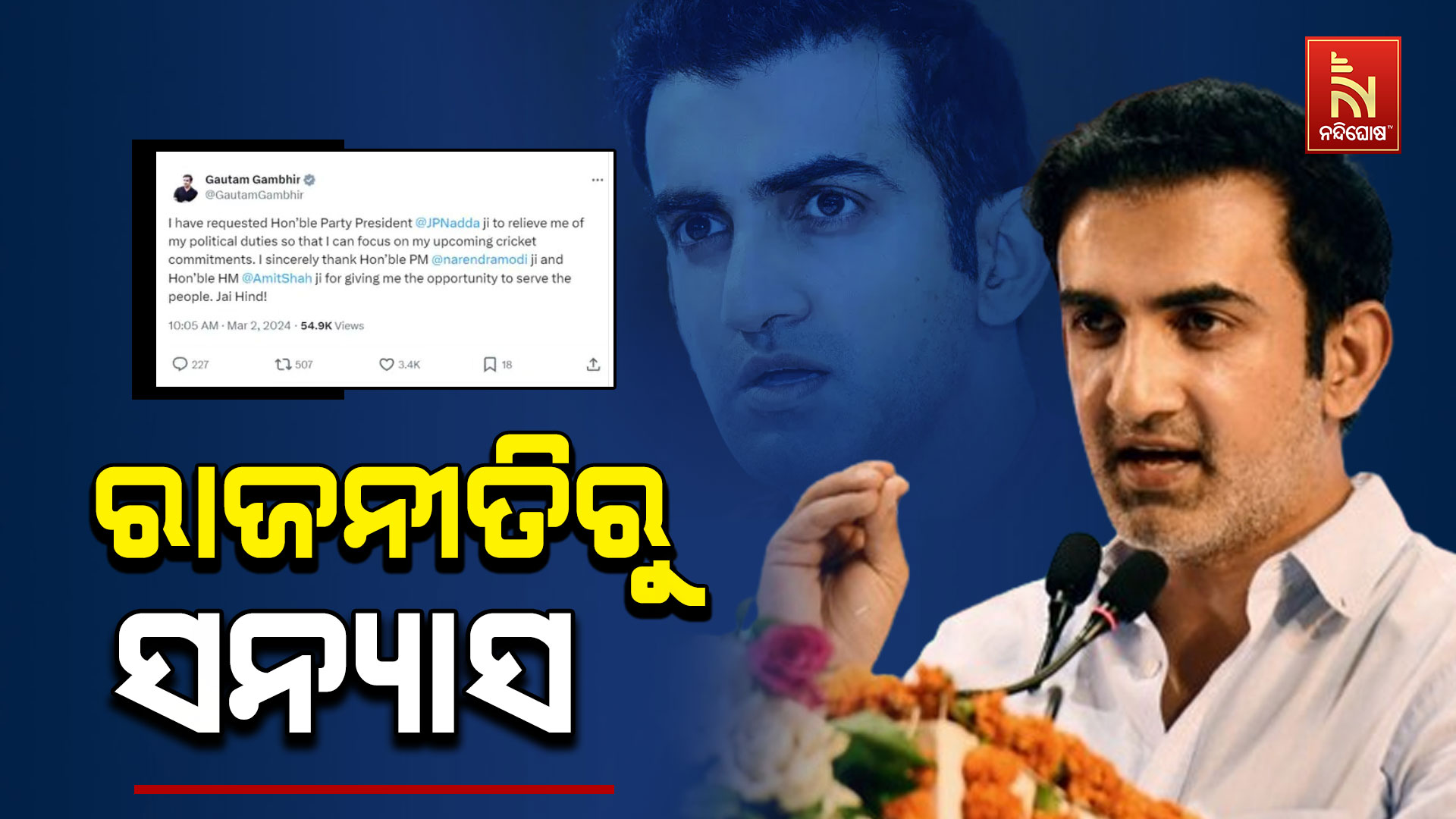 ନୂଆଦିଲ୍ଲୀ: ଆଗାମୀ ଆଇପିଏଲ୍ ୨୦୨୪ ସିଜିନ ପୂର୍ବରୁ ରାଜନୀତିରୁ ଅବସର ଘୋଷଣା କରିଛନ୍ତି ପୂର୍ବତନ କ୍ରିକେଟର ଗୌତମ ଗମ୍ଭୀର । ସେ ଲୋକସଭା ନିର୍ବାଚନରେ ପ୍ରତିଦ୍ୱନ୍ଦ୍ୱିତା ନ କରିବାକୁ ନିଷ୍ପତ୍ତି ନେଇଛନ୍ତି। ସେ ଟୁଇଟ୍ କରି ଏ ସମ୍ପର୍କରେ ସୂଚନା ଦେଇଛନ୍ତି। ଆଗାମୀ ଆଇପିଏଲ୍ ପୂର୍ବରୁ ଗମ୍ଭୀରଙ୍କୁ ରାଜନୀତିରୁ ମୁକ୍ତ କରିବାକୁ ବିଜେପି ଅଧ୍ୟକ୍ଷ ଜେପି ନାଡାଙ୍କୁ ସେ ନିବେଦନ କରିଛନ୍ତି। ଗମ୍ଭୀର କୋଲକାତା ନାଇଟ୍ ରାଇଡର୍ସର ପରାମର୍ଶଦାତା ଭାବେ ଦାୟିତ୍ବ ତୁଲାଉଛନ୍ତି ।