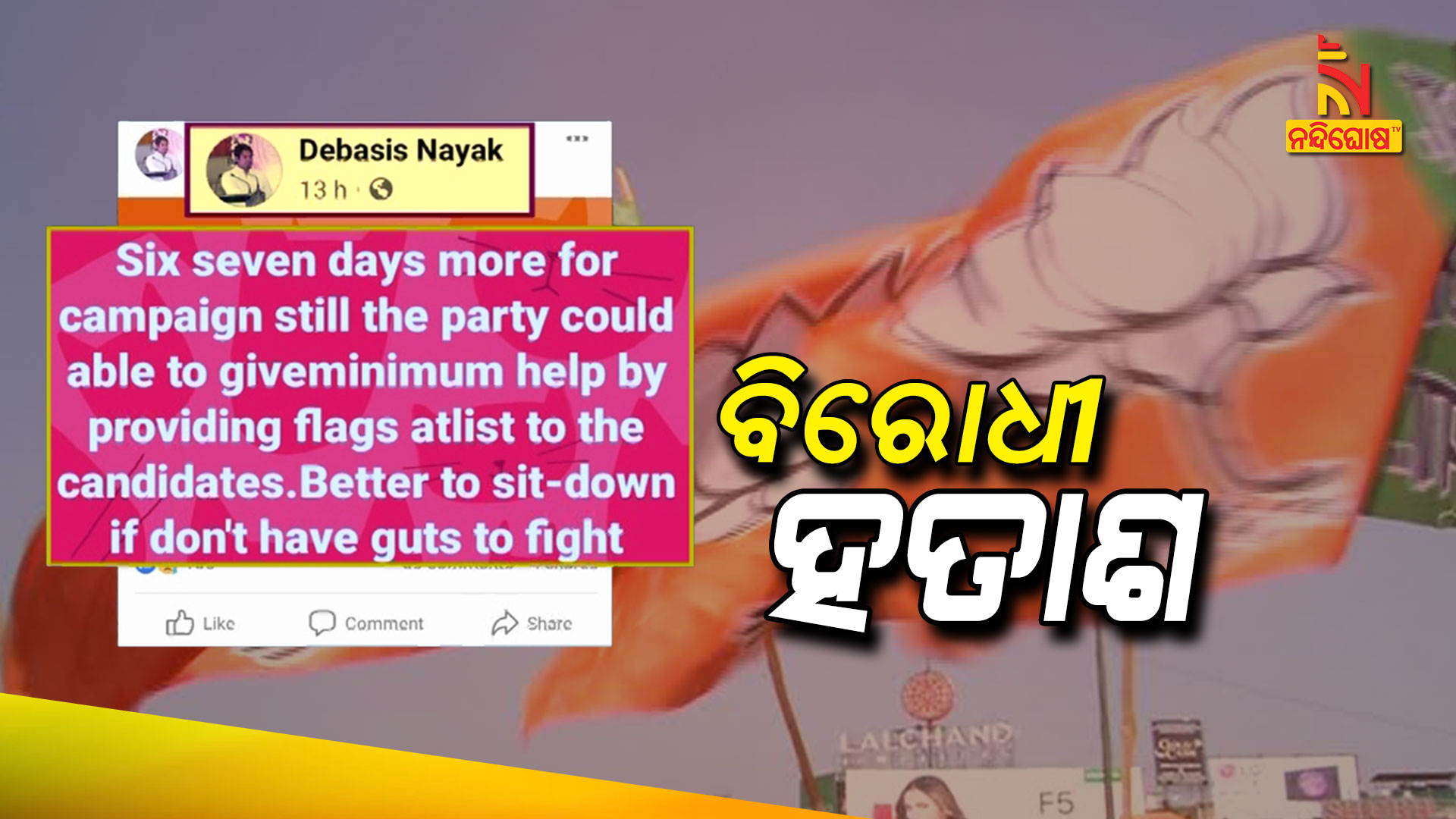 ପୌର ପ୍ରଚାରରେ ବିଜେପିର ଅସ୍ତିତ୍ୱ ନେଇ ପ୍ରଶ୍ନ କରିଛନ୍ତି ବାପି । ଛଅରୁ ସାତ ଦିନ ପ୍ରଚାର ବାକି ଅଛି । ହେଲେ ପ୍ରାର୍ଥୀଙ୍କୁ ପତାକା ଦେଇ ପାରୁ ନାହିଁ ଦଳ । ସତସାହସ ନଥିବାରୁ ଦଳୀୟ ନେତାଙ୍କୁ ନିର୍ବାଚନରୁ ଓହରିବାକୁ ସେ ଆହ୍ୱାନ ଦେଇଛନ୍ତି । କହିବାକୁ ଗଲେ ଦଳୀୟ କନ୍ଦଳକୁ ସେ ଖୁଲ୍ଲମଖୁଲା ସାମ୍ନାକୁ ଆଣିଛନ୍ତି । ବିଜେପି ନେତାମାନେ ଦଳୀୟ ଅସହଯୋଗକୁ ଅସ୍ୱୀକାର କରି ବାପି ବିଜେପି କର୍ମୀ ନୁହନ୍ତି ବୋଲି ଯୁକ୍ତି ବାଢ଼ିଛନ୍ତି ।