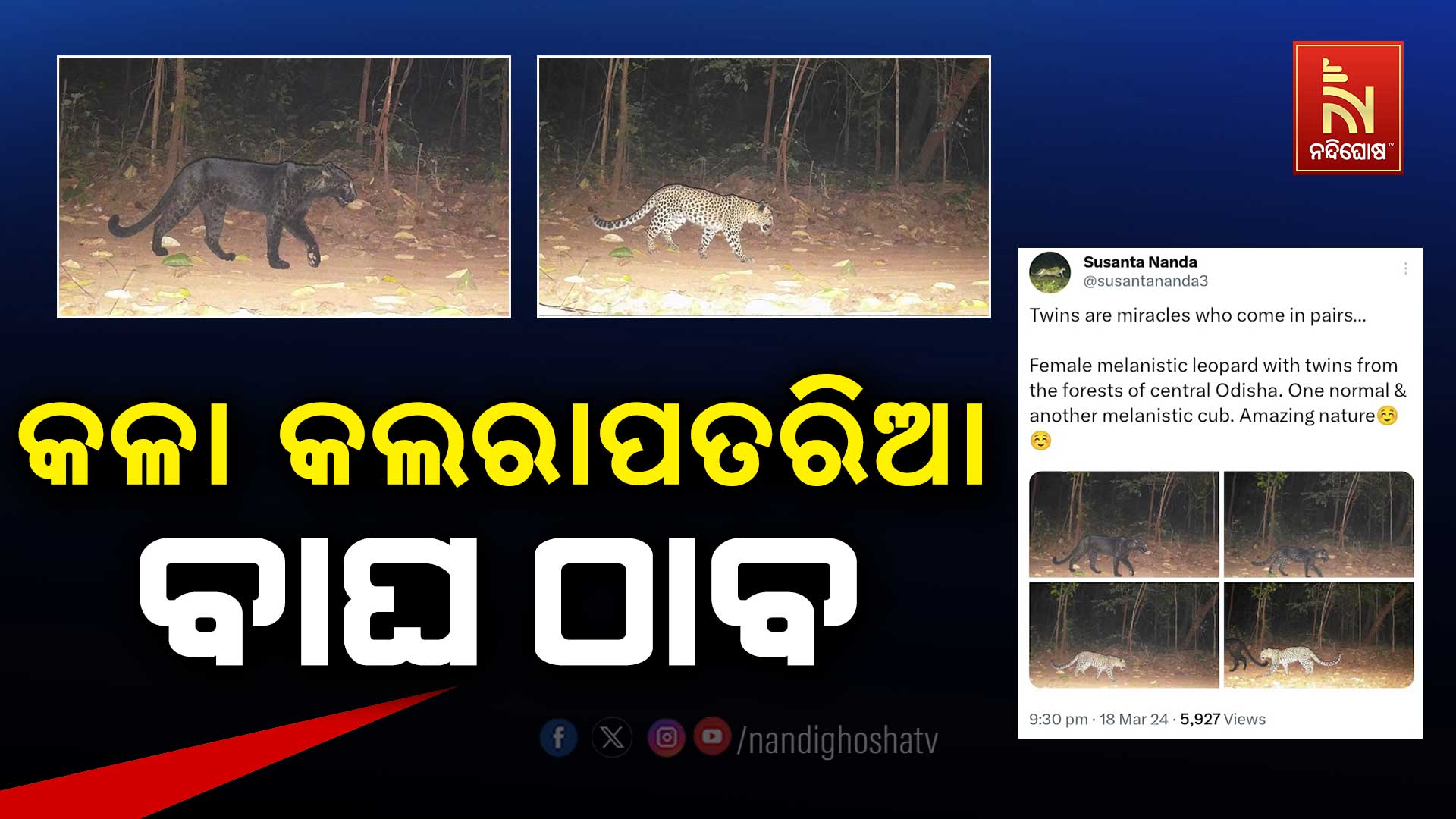 ଏକ୍ସରେ ପୋଷ୍ଟ କରି ଏହି ସୂଚନା ଦେଇଛନ୍ତି ପିସିସିଏଫ ସୁଶାନ୍ତ ନନ୍ଦ। କ୍ଯାମେରା ଟ୍ରାପରେ ୨ ଶାବକଙ୍କ ସହ କଳା କଲରାପତରିଆ ବାଘ ବାଘ ଠାବ ହୋଇଥିବା ଜଣାପଡିଛି।୨ ଶାବକଙ୍କ ମଧ୍ଯରୁ ଗୋଟିଏ ସାଧାରଣ କଲକରାପତରିଆ ଥିବାବେଳେ ଅନ୍ୟଟି କଳା ରଙ୍ଗର ବୋଲି ଜଣାପଡିଛି।