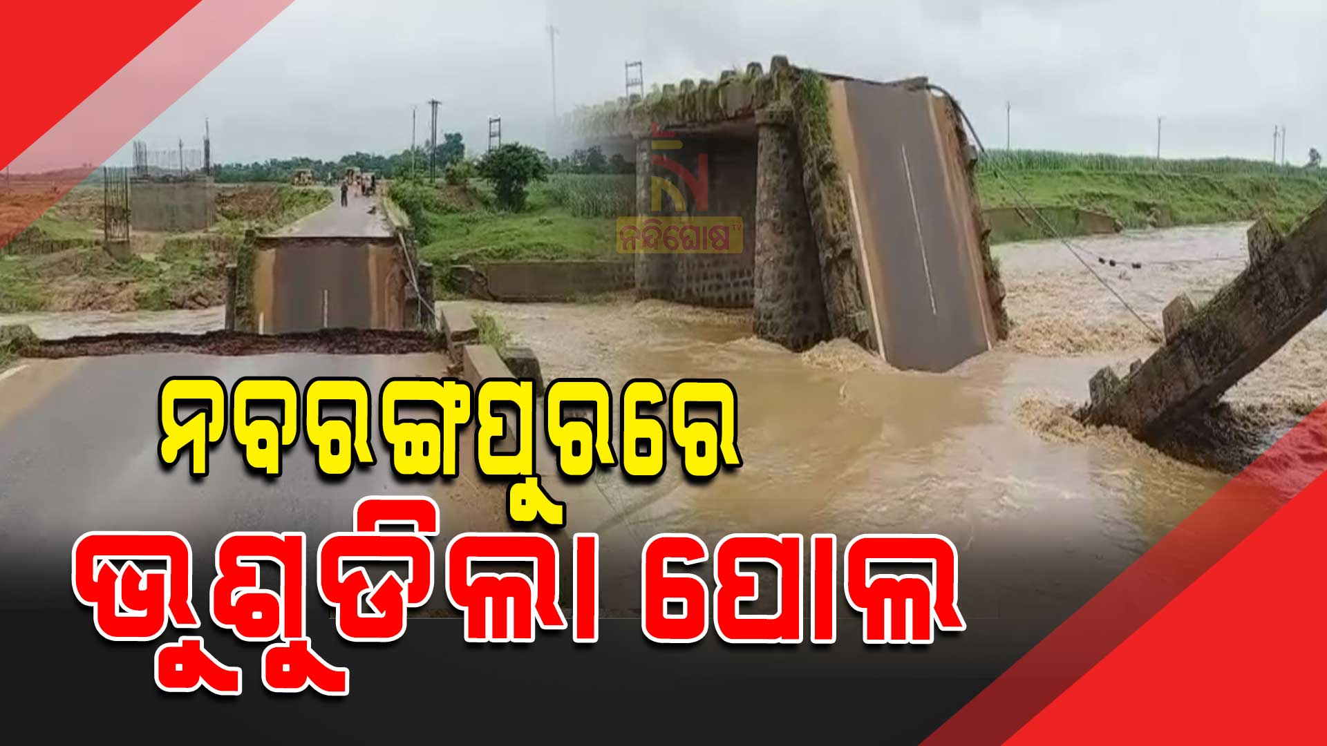 ନବରଙ୍ଗପୁର: ଭୁଶୁଡ଼ିଲା ପୋଲ । ପ୍ରଥମ ବର୍ଷାରେ ଭୁଶୁଡ଼ିଲା ବଡ଼ ମସିଗାଁ ପୋଲ । ୪୦ ବର୍ଷ ତଳେ ତୁରୀ ନଦୀ ଉପରେ ଏହି ପୋଲ ନିର୍ମାଣ ହୋଇଥିଲା । ପ୍ରତିଦିନ ଶହଶହ ଗାଡ଼ି ଏହି ପୋଲ ଦେଇ ଯାଆସ କରୁଥିଲେ । ପୋଲ ଭୁଶୁଡିଯିବାରୁ ନବରଙ୍ଗପୁର-କୋଷାଗୁମୁଡ଼ା ମଧ୍ୟରେ ଯୋଗାଯୋଗ ବିଚ୍ଛିନ୍ନ ହୋଇଛି ।