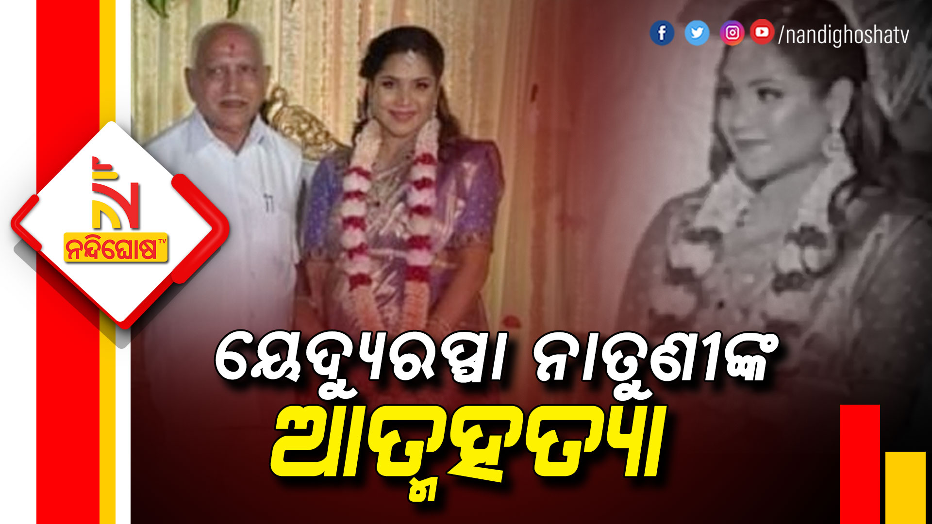 ବେଙ୍ଗାଲୁରୁ: କର୍ଣ୍ଣାଟକର ପୂର୍ବତନ ମୁଖ୍ୟମନ୍ତ୍ରୀ ତଥା ବରିଷ୍ଠ ବିଜେପି ନେତା ବିଏସ ୟେଦ୍ୟୁରପ୍ପାଙ୍କ ନାତୁଣୀ ଡାକ୍ତର ସୌନ୍ଦର୍ଯ୍ୟା ନୀରଜଙ୍କ ସନ୍ଦେହଜନକ ମୃତ୍ୟୁ। ମାତ୍ର ୩୦ ବର୍ଷୀୟ ସୈନ୍ଦର୍ଯ୍ୟାଙ୍କ ମୃତଦେହ ଝୁଲନ୍ତା ଅବସ୍ଥାରେ ଉଦ୍ଧାର କରାଯାଇଛି। ସେଣ୍ଟ୍ରାଲ ବେଙ୍ଗାଳୁରୁର ବସନ୍ତନଗର ଆପାର୍ଟମେଣ୍ଟରେ ସେ ଆତ୍ମହତ୍ୟା କରିଛନ୍ତି ।