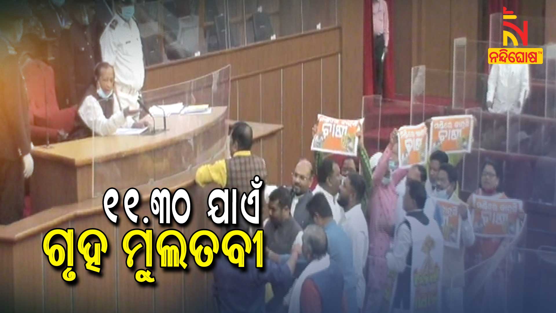 ଭୁବନେଶ୍ୱର: ବିଧାନସଭାରେ ପୁଣି ହୋହଲ୍ଲା। ଚାଷୀ ପ୍ରସଂଗରେ ଉଭୟ କଂଗ୍ରେସ ଓ ବିଜେପି ପ୍ଲାକାର୍ଡ ଦେଖାଇ କଲେ ନାରାବାଜି। ଗୃହ ଆରମ୍ଭ ରୁ ହୋହଲ୍ଲା। ୩ମିନିଟ ଚାଲିବା ପରେ ଗୃହ ମୁଲତବୀ । ଶନିବାର ରାଜ୍ୟ ବଜେଟ୍ ଅଧିବେଶନର ତୃତୀୟ ଦିବସ ଥିବା ବେଳେ ଧାନ କିଣା ସମ୍ପର୍କରେ ଆଜି ଗୃହରେ ଉତ୍ତର ରଖିବେ ସମବାୟ ମନ୍ତ୍ରୀ । ୭ଦିନ ପରେ ଧାନ କିଣାରେ ଅଗ୍ରଗତି ସମ୍ପର୍କରେ ଗୃହକୁ ଅବଗତ କରାଇବେ। ଗତକାଲି ଦ୍ୱିତୀୟ ଦିନରେ ଗୃହରେ ବାରମ୍ବାର ଅଚଳାବସ୍ଥା ଲାଗି ରହିବାରୁ ବାଚସ୍ପତି ସର୍ବଦଳୀୟ ବୈଠକ ଡାକିଥିଲେ । ଏହାପରେ ବାଚସ୍ପତି ସୂର୍ଯ୍ୟନାରାୟଣ ପାତ୍ର ଗୃହରେ ରୁଲିଂ ଦେଇଥିଲେ । ଏହାପରେ ବି ହଟ୍ଟଗୋଳ ବନ୍ଦ ହୋଇ ନଥିଲା । ରାଜ୍ୟପାଳଙ୍କ ଅଭିଭାଷଣ ଉପରେ ଧନ୍ୟବାଦ ପ୍ରସ୍ତାବ ଆଲୋଚନା ବେଳେ ଗୃହର ମଧ୍ୟଭାଗରେ ଧାନମଣ୍ଡି ପ୍ରସଙ୍ଗକୁ ନେଇ ବିଜେପି ଓ କଂଗ୍ରେସର ହଟ୍ଟଗୋଳ କରିଥିଲେ । ବାଚସ୍ପତିଙ୍କ ପୋଡିୟମ ଉପରେ ଚଢ଼ିବାକୁ ବିରୋଧୀ ଉଦ୍ୟମ କରିଥିଲେ । ପୋଡିୟମରେ ଲାଗିଥିବା ଫାଇବାରକୁ ଖସାଇଦେଇଥିଲେ ବିରୋଧୀ। ମାଇକ୍ ମଧ୍ୟ ଭାଙ୍ଗିଛନ୍ତି ବିରୋଧୀ । ପେଟ୍ରୋଲ ଓ ଡିଜେଲ ଦର ବୃଦ୍ଧି ଯୋଗୁ ବିଜେପି ଆଲୋଚନାକୁ ଡ଼ରୁଥିବାରୁ ଗୃହକୁ ଚଳାଇ ଦେଉନାହିଁ ବୋଲି ଶାସକ ବିଜେଡି ଅଭିଯୋଗ କରିଛି । ଗୃହ ଚାଲିପାରୁନଥିବାରୁ ବିରୋଧୀଙ୍କୁ ସମାଲୋଚନା କରିଛି ଶାସକ ବିଜେଡି । ତେବେ ଆଜି ତୃତୀୟ ଦିନରେ ମଧ୍ୟ ଗୃହରେ ସମାନ ପରିସ୍ଥିତି ଲାଗିରହିଥିବା ଦେଖିବାକୁ ମିଳିଛି ।