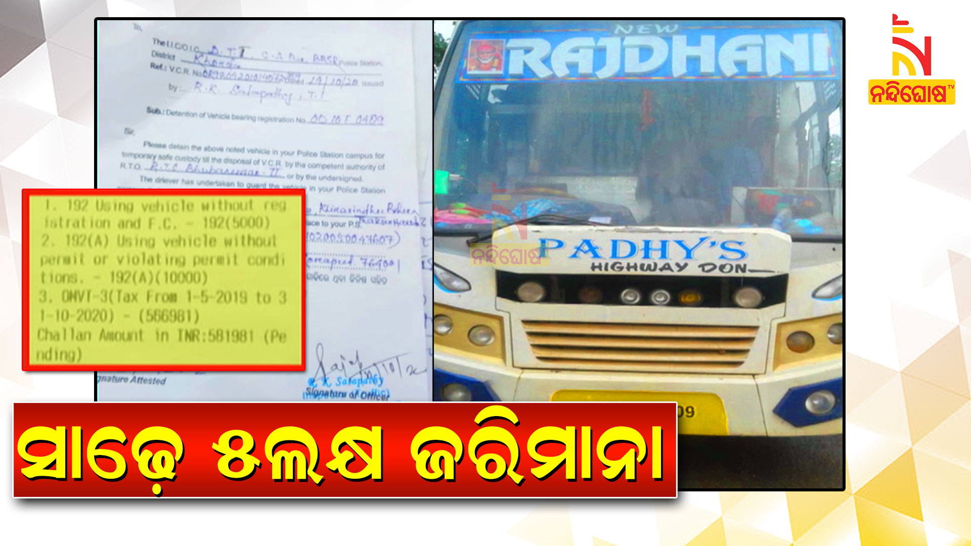 ଭୁବନେଶ୍ୱର: କୋରାପୁଟରୁ ଭୁବନେଶ୍ୱର ଚଳାଚଳ କରୁଥିବା ଯାତ୍ରୀବାହୀ ବସକୁ ୫ଲକ୍ଷ ୬୬ ହଜାର ଟଙ୍କା ଜରିମାନା କରାଯାଇଛି । ବସ୍କୁ ଆରଟିଓ-୨ ଭୁବନେଶ୍ୱର ଜରିମାନା କରିବା ସହ ଏହାକୁ ଏନଫୋର୍ସମେଣ୍ଟ ୱିଙ୍ଗ ଅଟକ ରଖିଛି । ୨୦୧୯ ମେ ମାସରୁ ଏମ୍ଭି ଟ୍ୟାକ୍ସ ଦେଇନଥିବାରୁ ଜରିମାନା କରାଯାଇଛି । ଟ୍ୟାକ୍ସ ସହ ମୋଟ୍ ୫ଲକ୍ଷ ୬୬ହଜାର ୯୮୧ ଟଙ୍କା ଜରିମାନା କରାଯାଇଛି । ବସଟିର ବୈଧ ଷ୍ଟେଜ କ୍ୟାରେଜ୍ ପରମିଟ୍ ନଥିବା ସୂଚନା ମିଳିଛି ।