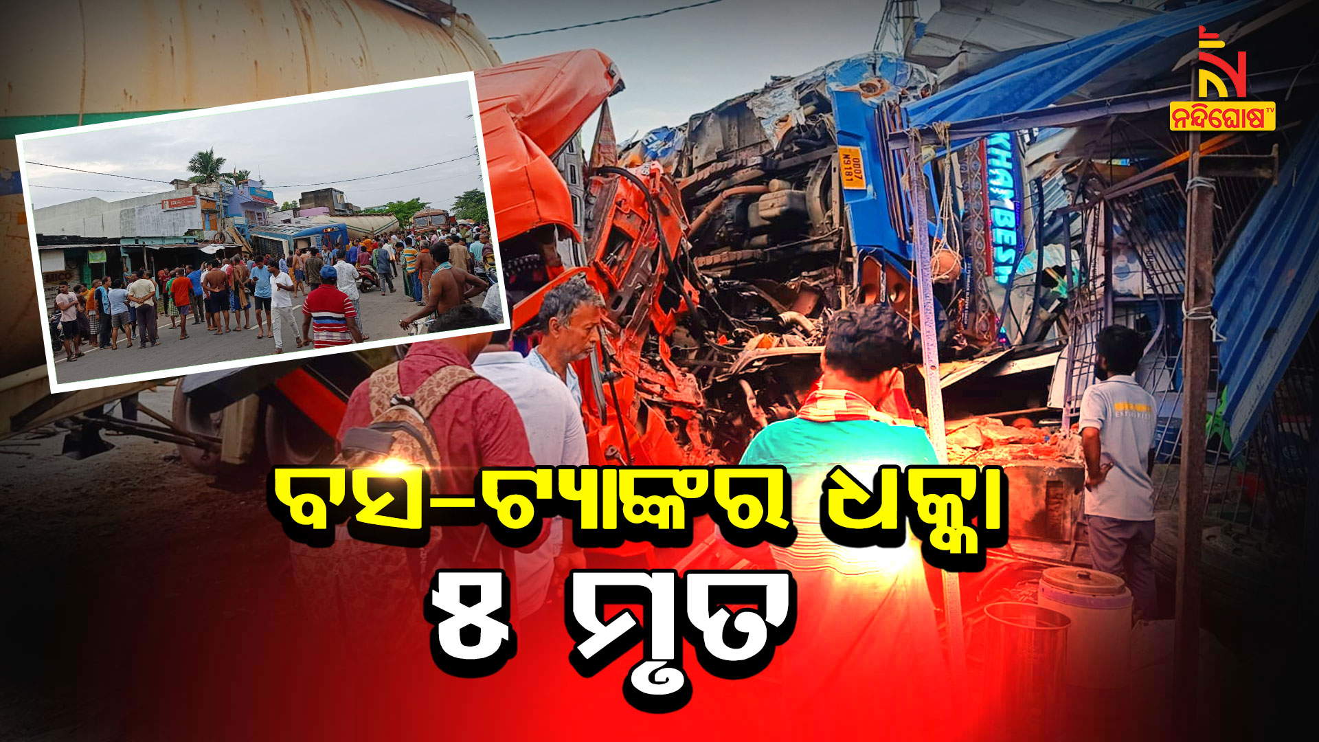 ନନ୍ଦିଘୋଷ ବ୍ୟୁରୋ: ବସ ଓ ଟ୍ୟାଙ୍କର ମଧ୍ୟରେ ଧକ୍କା। ଘଟଣା ସ୍ଥଳରେ ୫ ଜଣଙ୍କ ମୃତ୍ୟୁ । ଗଞ୍ଜାମ ହିଞ୍ଜିଳି ଥାନା ଅନ୍ତର୍ଗତ ସମରଝୋଳ ଛକରେ ଘଟିଛି ମର୍ମନ୍ତୁଦ ସଡ଼କ ଦୁର୍ଘଟଣା । ଅନେକ ବସ ଯାତ୍ରୀ ଗୁରୁତର ରହିଛନ୍ତି। ଘରୋଇ ବସଟି ଭଞ୍ଜନଗର ରୁ ବ୍ରହ୍ମପୁର ଅଭିମୁଖେ ଆସୁଥିବା ବେଳେ ଦୁର୍ଘଟଣା ଘଟିଛି।ଘଟଣା ସ୍ଥଳରେ ପୋଲିସ ପହଞ୍ଚି ଆହତଙ୍କୁ ଉଦ୍ଧାର କରି ମେଡିକାଲ ପଠାଇଛି ।