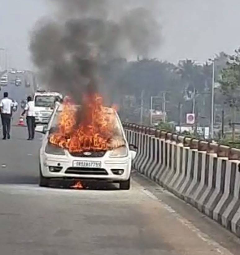 ଭୁବନେଶ୍ୱର ରାଜରାସ୍ତାରେ ଜଳିଗଲା କାର