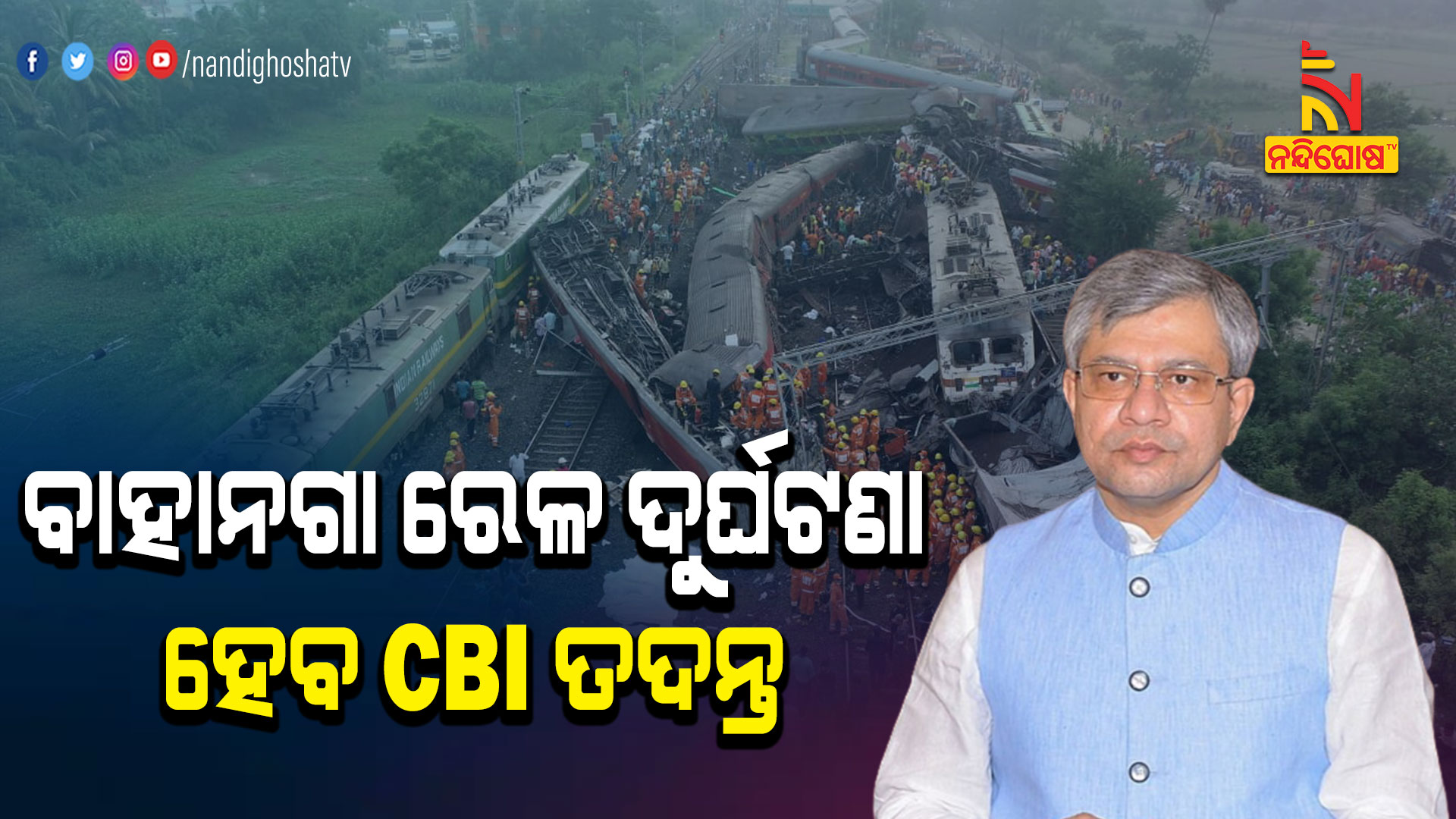 ଭୁବନେଶ୍ୱର: ବାହାନଗା ରେଳ ଦୁର୍ଘଟଣାକୁ ନେଇ ବଡ଼ ସୂଚନା ଦେଇଛନ୍ତି ରେଳ ମନ୍ତ୍ରୀ ଅଶ୍ୱିନୀ ବୈଷ୍ଣବ । କେନ୍ଦ୍ର ସରକାରଙ୍କୁ ଏନେଇ ସୁପାରିଶ କରିବ ରେଲଓ୍ବେ ବୋର୍ଡ । ଏନେଇ ସୂଚନା ଦେଲେ କେନ୍ଦ୍ର ରେଳମନ୍ତ୍ରୀ ଅଶ୍ୱିନୀ ବୈଷ୍ଣବ । ଘଟଣାର ପୁଙ୍ଖାନୁପୁଙ୍ଖ ତଦନ୍ତ ହେବା ପରେ ଦୁର୍ଘଟଣା ପଛର ସତ ପଦାକୁ ଆସିବ । ଏତେ ବଡ଼ ରେଳ ଦୁର୍ଘଟଣା ପାଇଁ ଦାୟୀ କିଏ । ପ୍ରକୃତ କାରଣ ଖୁବଶୀଘ୍ର ଜଣାପଡ଼ିବ ।
