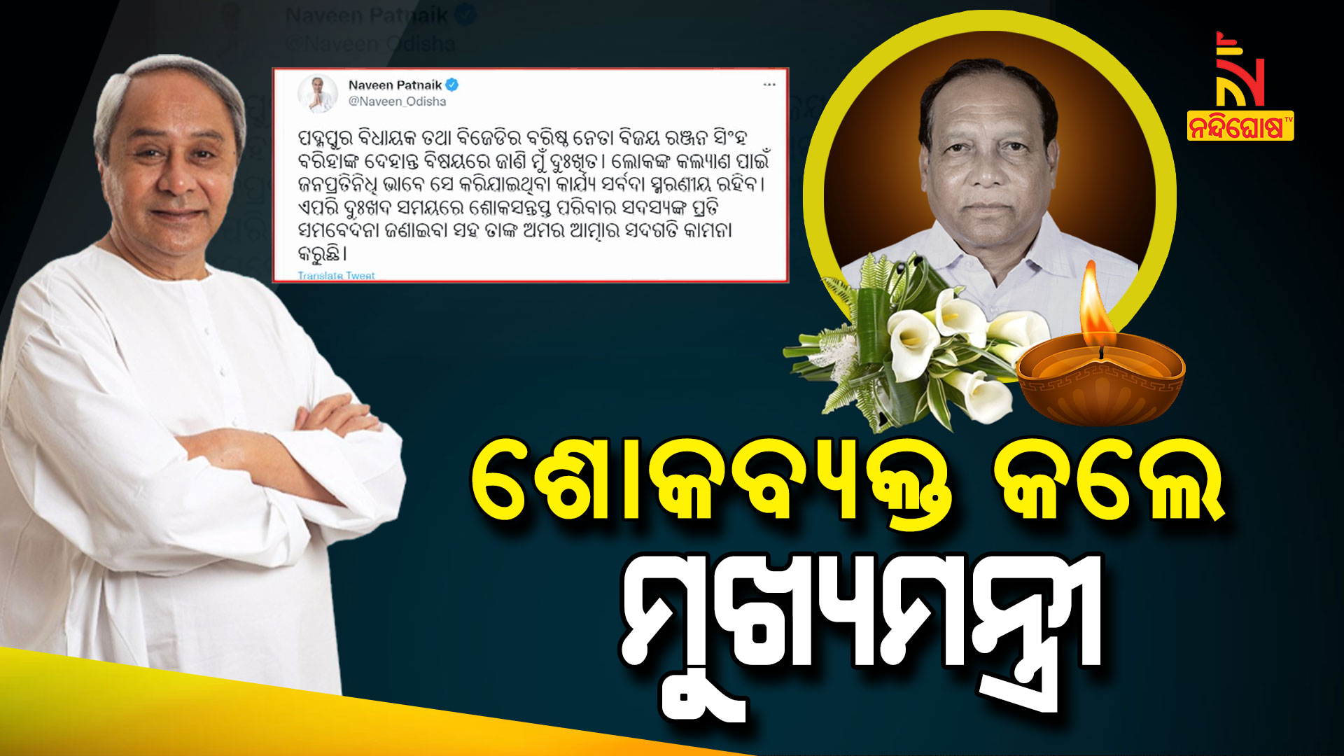 ଭୁବନେଶ୍ୱର: ପଦ୍ମପୁର ବିଧାୟକ ତଥା ବିଜେଡିର ବରିଷ୍ଠ ନେତା ବିଜୟ ରଞ୍ଜନ ସିଂହ ବରିହାଙ୍କ ଦେହାନ୍ତରେ ଗଭୀର ଶୋକବ୍ୟକ୍ତ କରିଛନ୍ତି ମୁଖ୍ୟମନ୍ତ୍ରୀ ନବୀନ ପଟ୍ଟାନାୟକ । ମୁଖ୍ୟମନ୍ତ୍ରୀ କହିଛନ୍ତି ବିଜୟଙ୍କ ଦେହାନ୍ତ ସମ୍ବନ୍ଧରେ ଖବର ଜାଣି ମୁଁ ଦୁଃଖିତ। ଲୋକଙ୍କ କଲ୍ୟାଣ ପାଇଁ ଜନପ୍ରତିନିଧି ଭାବେ ସେ କରିଯାଇଥିବା କାର୍ଯ୍ୟ ସର୍ବଦା ସ୍ମରଣୀୟ ରହିବ।