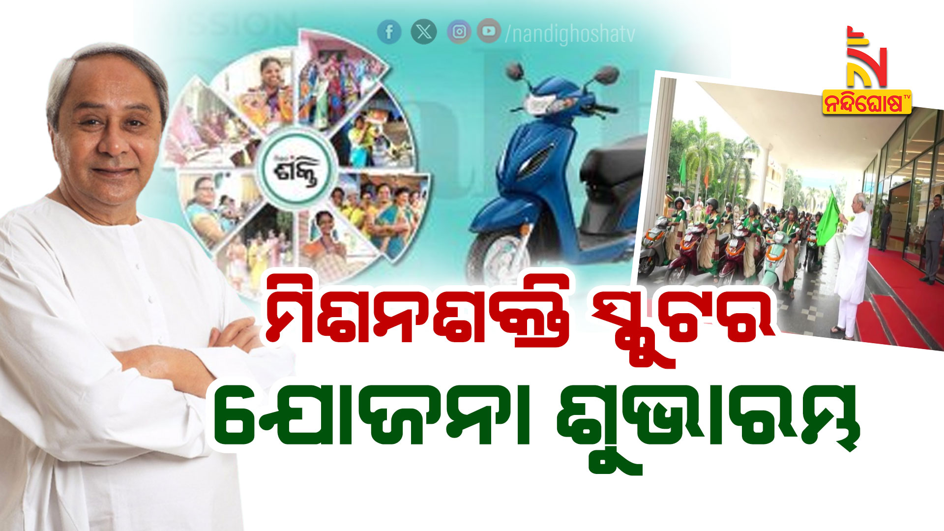 ଭୁବନେଶ୍ବର: ରାଜ୍ୟରେ ଆରମ୍ଭ ହେଲା ମିଶନଶକ୍ତି ସ୍କୁଟର ଯୋଜନା । ମୁଖ୍ୟମନ୍ତ୍ରୀ ନବୀନ ପଟ୍ଟନାୟକ କଲେ ଯୋଜନାର ଶୁଭାରମ୍ଭ । ବିଏଲଏଫ ଓ ଡିଏଲଏଫଙ୍କ ପାଇଁ କରାଯାଇଛି ଗାଡି ବ୍ୟବସ୍ଥା । ୧୫ ହଜାର ମାଆଙ୍କୁ ସ୍କୁଟର ପ୍ରଦାନ କରାଯାଇଛି । ଏହି ଅବସରରେ ରାଜ୍ୟବାସୀଙ୍କୁ ଉଦବୋଧନ ଦେଇ କହିଛନ୍ତି, ଗତି ହିଁ ଶକ୍ତି । ସ୍କୁଟର ଯୋଜନା ମାଆଙ୍କ ଗତିକୁ ଶକ୍ତିଶାଳୀ କରିଛି । ଓଡ଼ିଶା ପାଇଁ ମାଆମାନେ ଆଣିଛନ୍ତି ନୂଆ ଗତି, ଶକ୍ତି ଓ ପ୍ରଗତୀ ।