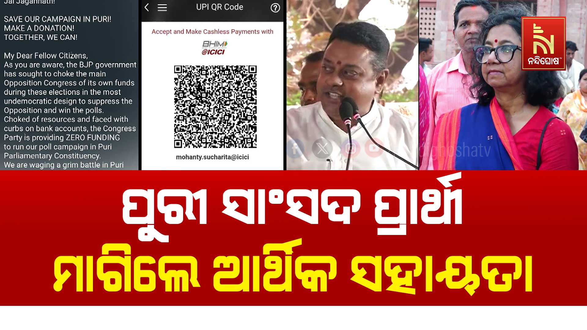 ବିଜେପି ସରକାର କଂଗ୍ରେସର ସବୁ ଆକାଉଣ୍ଟ ବନ୍ଦ କରି ଦେଇଥିବାରୁ ନିର୍ବାଚନୀ ଖର୍ଚ୍ଚ ବହନ କରିବା ପାଇଁ ଖୁଲମ ଖୁଲ୍ଲା ଟଙ୍କା ମାଗୁଥିବା ଏବେ ପୁରୀରେ ଚର୍ଚ୍ଚାର ବିଷୟ ପାଲଟିଛି। ତେବେ ଏପରି ସିଧାସଳଖ ଟଙ୍କା ମାଗିବା ଘଟଣାକୁ ବିଜେପି ପ୍ରାର୍ଥୀ ସମ୍ବିତ ପାତ୍ର ହାଲୁକା ଭାବେ ନେଇଛନ୍ତି । ବିରୋଧ କରିବା ପରିବର୍ତ୍ତେ ପରୋକ୍ଷରେ ସେ ସୁଚରିତାଙ୍କୁ ଭଉଣୀ କହି ଏପରି ଫଣ୍ଡିଙ୍ଗକୁ ଏକ ଭିନ୍ନ ତରିକା କହି ସମର୍ଥନ ଜଣାଇଛନ୍ତି।