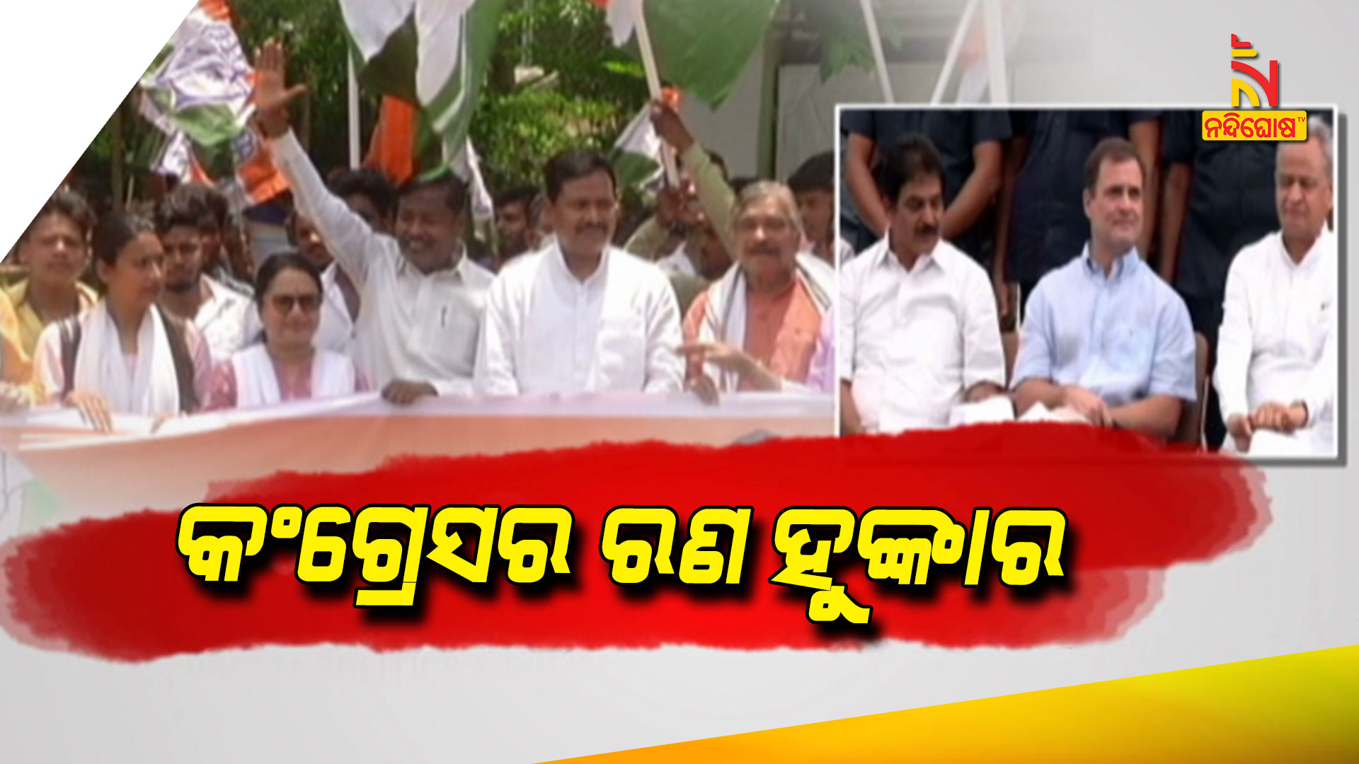 ଭୁବନେଶ୍ବର: କେନ୍ଦ୍ର ବିରୋଧରେ କଂଗ୍ରେସର ରଣହୁଙ୍କାର । ଶୋଭାଯାତ୍ରା… ବିକ୍ଷୋଭ… ଧାରଣା…। ରାହୁଲଙ୍କୁ ଇଡିର ଜେରାକୁ ନେଇ ତାତିଲା କଂଗ୍ରେସ । ଦିଲ୍ଲୀରୁ ପଲ୍ଲୀ ଆନ୍ଦୋଳନ ଚେତାବନୀ । କେନ୍ଦ୍ର ସରକାରଙ୍କ ପ୍ରତିଶୋଧ ରାଜନୀତି ପାଇଁ ଅସ୍ତ୍ର ହୋଇଛି ଇଡି । କେନ୍ଦ୍ର ବିରୋଧୀ ସ୍ବରକୁ ଚପାଇ ଦେବାକୁ ଇଡି ଓ ସିବିଆଇକୁ ଅସ୍ତ୍ର କରିଛି କେନ୍ଦ୍ର । ନ୍ୟାସନାଲ ହେରାଲ୍ଡ ଆର୍ଥିକ ଅନିୟମିତତା ମାମଲାକୁ ଆଳ କରି ଗାନ୍ଧୀ ପରିବାରକୁ ଅଯଥା ଟାର୍ଗେଟ କରାଯାଉଛି । ଏଭଳି ନାରା ଦେଇ ରାଜ୍ୟ କଂଗ୍ରେସ କରିଛି ବିକ୍ଷୋଭ । କେନ୍ଦ୍ର ସରକାରଙ୍କ ବିରୋଧରେ ଗର୍ଜନ କରିଛି ଦଳ । ଶହଶହ କଂଗ୍ରେସ କର୍ମୀ ପିସିସି ସଭାପତି ଶରତ ପଟ୍ଟନାୟକଙ୍କ ନେତୃତ୍ବରେ ଶୋଭାଯାତ୍ରାରେ ରାଜଭବନ ଆଗରେ କେନ୍ଦ୍ର ବିରୋଧରେ ବିକ୍ଷୋଭ ଓ ଧାରଣା ଦେଇଛନ୍ତି । ପ୍ରତିବାଦ ସଭାରେ ଜଣକ ପରେ ଜଣେ କଂଗ୍ରେସ ନେତା କେନ୍ଦ୍ର ବିରୋଧରେ ବର୍ଷିବା ସହ ଇଡିର କାର୍ଯ୍ୟଦକ୍ଷତାକୁ ନେଇ ଉଠାଇଛନ୍ତି ପ୍ରଶ୍ନ । ଆଗକୁ କେନ୍ଦ୍ର ଇଡି ଜରିଆରେ ଗାନ୍ଧୀ ପରିବାରକୁ ହଇରାଣ କଲେ କଂଗ୍ରେସ କେନ୍ଦ୍ରୀୟ କାର୍ଯ୍ୟାଳୟ ଆଗରେ ବିକ୍ଷୋଭ କରିବ । ଏହାସହ ତୃଣମୂଳସ୍ତରରୁ ଆନ୍ଦୋଳନ କରାଯିବ ବୋଲି ଚେତାବନୀ ଦେଇଛି ଦଳ ।