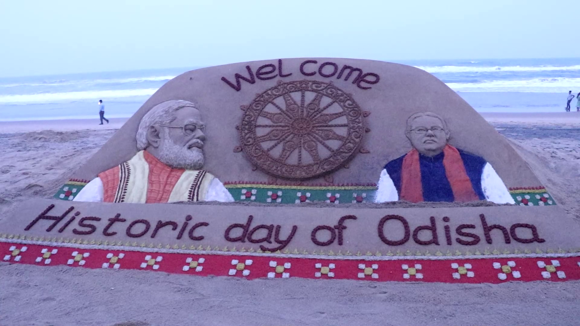 ନନ୍ଦିଘୋଷ ବ୍ୟୁରୋ: ନୂଆ ମୁଖ୍ୟମନ୍ତ୍ରୀ ମୋହନ ମାଝୀଙ୍କୁ ଶୁଭେଚ୍ଛା ଜଣାଇଲେ ଆନ୍ତର୍ଜାତୀୟ ବାଲୁକା ଶିଳ୍ପୀ ସୁଦର୍ଶନ ପଟ୍ଟନାୟକ। ପୁରୀ ବେଳାଭୂମିରେ ବାଲୁକା କଳା ମାଧ୍ୟମରେ ଶୁଭେଚ୍ଛା ଜଣାଇଛନ୍ତି ସୁଦର୍ଶନ ପଟ୍ଟନାୟକ। ଆସନ୍ତାକାଲି ଶପଥ ଗ୍ରହଣ କରିବାକୁ ଯାଉଥିବା ନୂଆ ମୁଖ୍ୟମନ୍ତ୍ରୀ ମୋହନ ମାଝୀ ଓ ଶପଥ ଗ୍ରହଣ ସମାରୋହରେ ଯୋଗଦେବାକୁ ଥିବା ପ୍ରଧାନମନ୍ତ୍ରୀ ନରେନ୍ଦ୍ର ମୋଦିଙ୍କୁ ବାଲୁକା କଳାରେ ଅଭିନନ୍ଦନ ଜଣାଇଛନ୍ତି ସୁଦର୍ଶନ। ନରେନ୍ଦ୍ର ମୋଦି ଓ ମୋହନ ମାଝୀଙ୍କ ବାଲୁକା ଚିତ୍ର ସହ କୋଣାର୍କ ଚକ୍ରକୁ ମଧ୍ୟ ବାଲୁକା କଳାରେ ସ୍ଥାନ ଦେଇ ସେ ଅଭିନନ୍ଦନ ଜଣାଇଛନ୍ତି।