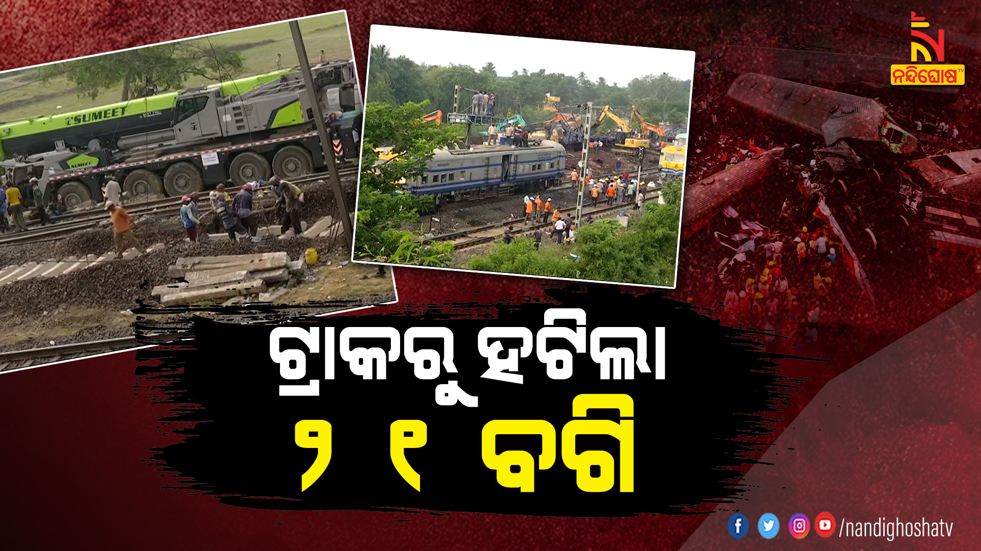 ବାହାନଗା: କରମଣ୍ଡଳ ଏକ୍ସପ୍ରେସ ଦୁର୍ଘଟଣାରେ ଉଦ୍ଧାର କାର୍ଯ୍ୟ ଶେଷ ହୋଇଥିବା ବେଳେ ଚାଲିଛି ପୁନରୁଦ୍ଧାର କାର୍ଯ୍ୟ । ରେଳ ଲାଇନରୁ ୨୧ଟି ବଗିକୁ ହଟାଯାଇଛି । ବିଦ୍ୟୁତ୍ ଖୁଣ୍ଟି ସହ ଲାଇନ୍ ମରାମତି କାର୍ଯ୍ୟ ଚାଲିଛି । ଟ୍ରେନ୍ ଲାଇନକୁ ଖାଲି କରାଯାଉଥିବା ବେଳେ, ଟ୍ରେନ୍ ଚଳାଚଳ ସ୍ବାଭାବିକ କରିବାକୁ ପ୍ରୟାସ ଜାରି ରହିଛି ।