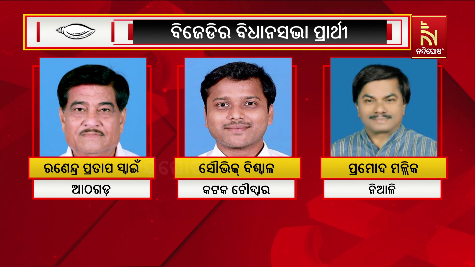 ନନ୍ଦିଘୋଷ ବ୍ୟୁରୋ: ୭୨ ବିଧାନସଭା ଆସନ ଏବଂ ୯ ଲୋକସଭା ଆସନ ପାଇଁ ପ୍ରାର୍ଥୀ ତାଲିକା ଘୋଷଣା କରିଛି ବିଜେଡି । ଓଡ଼ିଶା ବିଧାନସଭା ଆସନ ପାଇଁ ପ୍ରଥମ ଦଳ ଭାବେ ପ୍ରାର୍ଥୀ ତାଲିକା ଘୋଷଣା କରିଛି ବିଜେଡି । ବିରୋଧୀ କଂଗ୍ରେସ ଏବଂ ବିଜେପି ଏଯାବତ ଟିକେଟ ଘୋଷଣା କରିନାହାନ୍ତି । ତେବେ ଘୋଷଣା ହୋଇଥିବା ପ୍ରାର୍ଥୀ ତାଲିକାରେ କଟକ ଜିଲ୍ଲାର ଆସନରୁ ପ୍ରାର୍ଥୀଙ୍କ ନାମ ଘୋଷଣା କରାଯାଇଛି । ଆସନ୍ତୁ ନଜର ପକାଇବା କଟକ ଜିଲ୍ଲାର କେଉଁ ଆସନରୁ କାହାକୁ ମିଳିଲା ଟିକେଟ ।