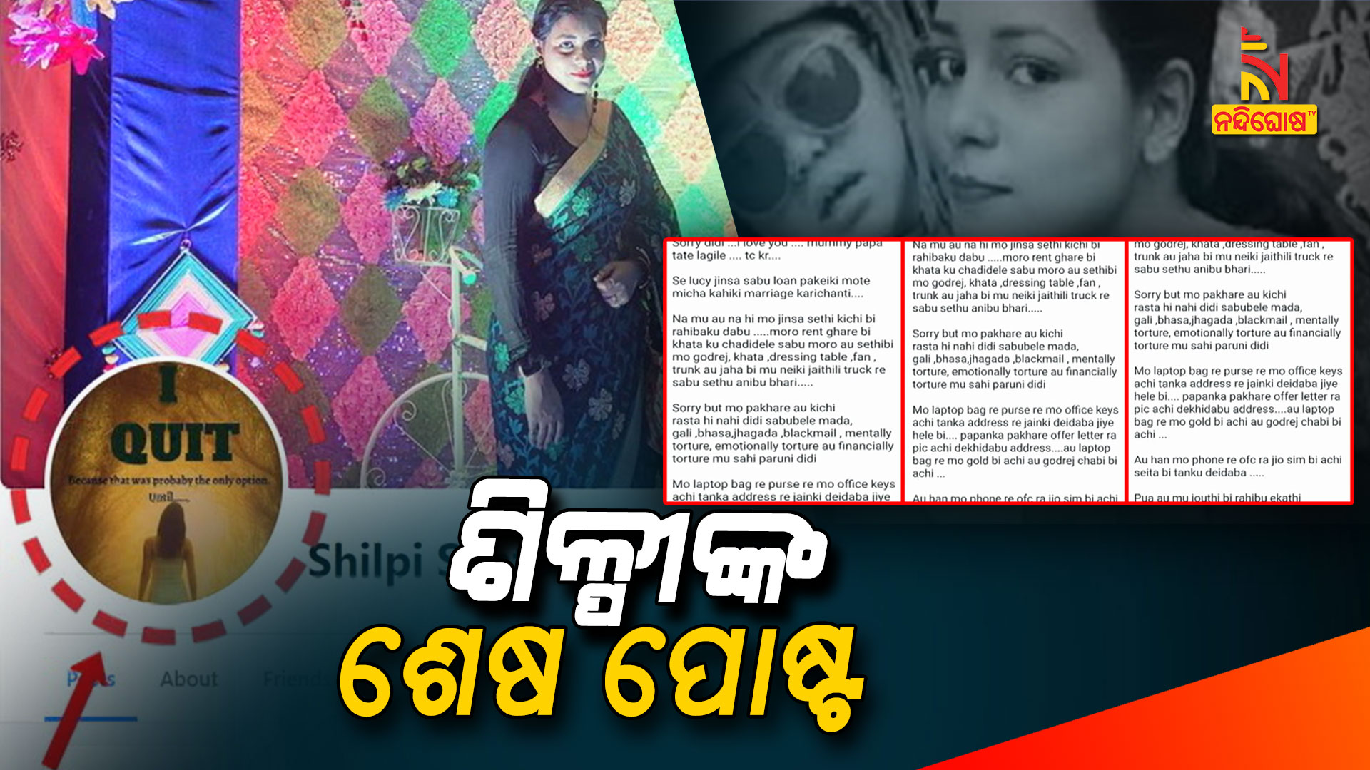 ଭୁବନେଶ୍ୱର: ସାମନାକୁ ଆସିଲା ମୃତ ଶିଳ୍ପୀଙ୍କ ଶେଷ ମେସେଜ୍ ଓ ପୋଷ୍ଟ। ମୃତ୍ୟୁ ପୂର୍ବରୁ ଭଉଣୀଙ୍କୁ ହ୍ବାଟ୍ସଆପରେ ମେସେଜ୍ କରିଥିଲେ ଶିଳ୍ପୀ। ସରି କହିବା ସହ ଭଉଣୀଙ୍କୁ ବାପା ମାଆ ଲାଗିଲେ ବୋଲି ଏଥିରେ କହିଛନ୍ତି। ଶାଶୂଘର ଗାଁ ଓ କଟକ ଭଡ଼ାଘରେ ଥିବା ସବୁ ଜିନିଷ ନେଇ ଆସିବାକୁ କହିଛନ୍ତି। ଭଡ଼ାଘରେ ଖଟ ଛାଡ଼ି ସବୁ ଜିନିଷ ତାଙ୍କର। ଶାଶୂଘରେ ଗୋଦ୍ରେଜ, ଖଟ, ଡ୍ରେସିଂ ଟେବୁଲ, ଫ୍ୟାନ, ଟ୍ରଙ୍କ ସହ ଯାହାବି ଅଛି ନେଇ ଆସିବାକୁ ଶିଳ୍ପୀ ତାଙ୍କ ଭଉଣୀଙ୍କୁ କହିଛନ୍ତି।