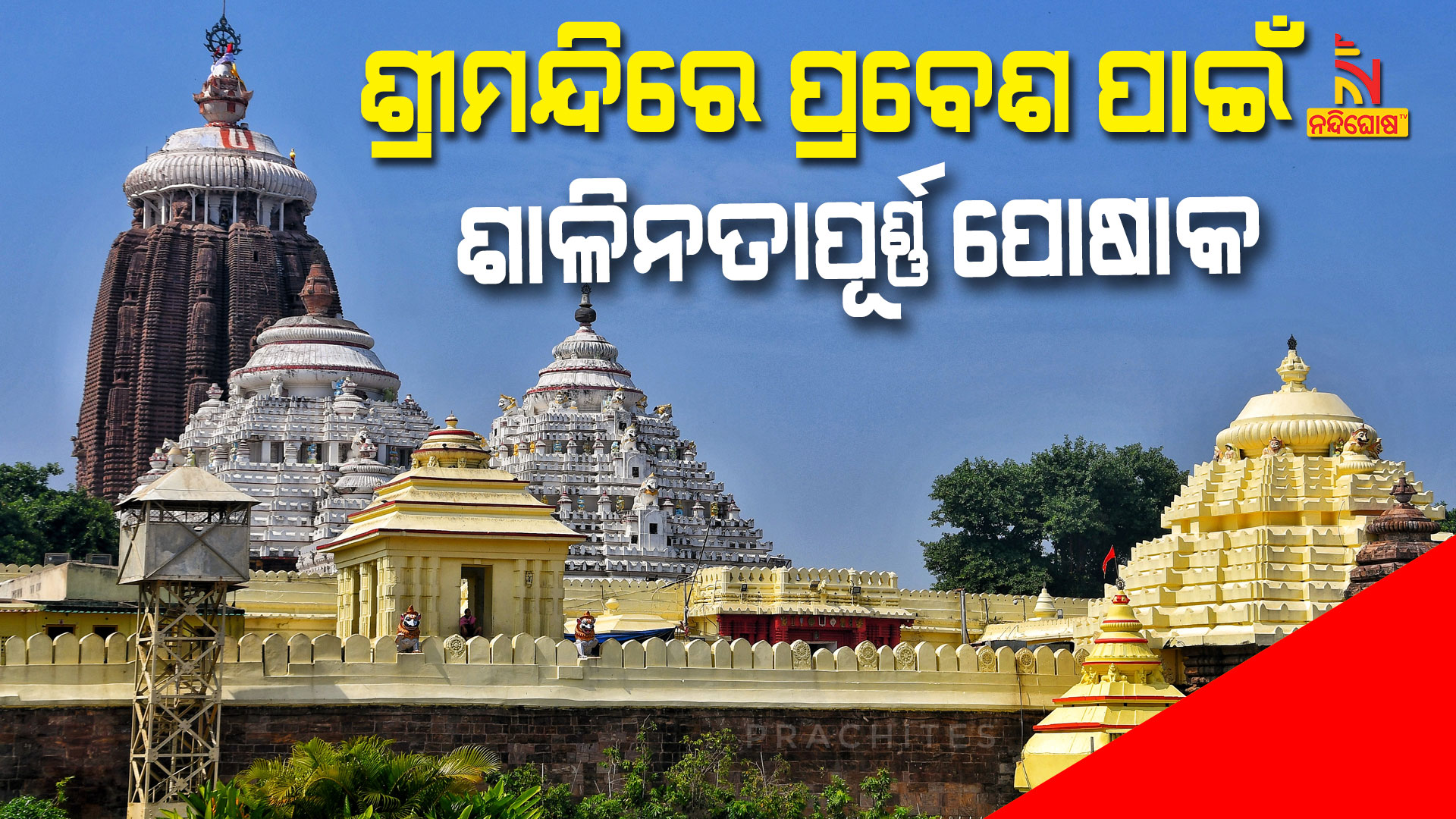 ପୁରୀ : ଶ୍ରୀମନ୍ଦିର ପ୍ରବେଶ କରିବାକୁ ହେଲେ ପିନ୍ଧିବାକୁ ପଡିବ ଶାଳୀନତାପୂର୍ଣ୍ଣ ପୋଷାକ । ଆଜିଠାରୁ ଶ୍ରୀମନ୍ଦିର ପ୍ରଶାସନ ପକ୍ଷରୁ ପ୍ରାଥମିକ ଭାବେ ଭକ୍ତଙ୍କ ମଧ୍ୟରେ ଏନେଇ ସଚେତନତା ସୃଷ୍ଟି କରାଯିବ । ଧାର୍ମିକ ମନୋଭାବ ଓ ଆଧ୍ୟାତ୍ମିକତା ଭାବନାକୁ ନେଇ ଭକ୍ତମାନେ ପୋଷାକ ପରିଧାନ ଦିଗରେ ଗୁରୁତ୍ବ ଦେବାକୁ ଅନୁରୋଧ କରାଯାଇଛି ।