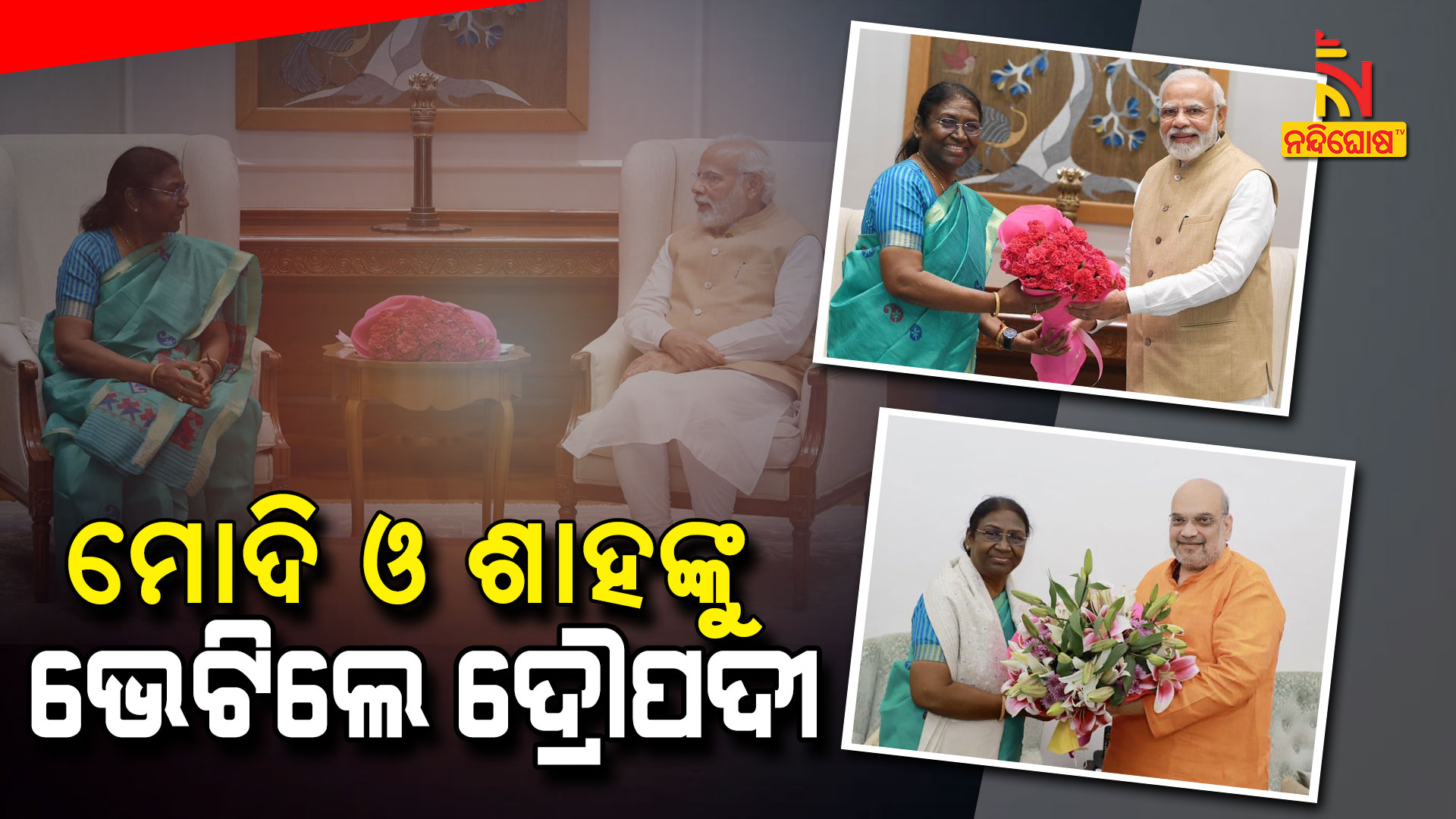 ନୂଆଦିଲ୍ଲୀ: ପ୍ରଧାନମନ୍ତ୍ରୀ ନରେନ୍ଦ୍ର ମୋଦି ଏବଂ ଗୃହମନ୍ତ୍ରୀ ଅମିତ ଶାହଙ୍କୁ ଭେଟିଲେ ଏନଡିଏ ରାଷ୍ଟ୍ରପତି ପ୍ରାର୍ଥୀ ଦ୍ରୌପଦୀ ମୁର୍ମୁ । ଦେଶର ପ୍ରଥମ ନାଗରିକ ଭାବେ ନିର୍ବାଚନ ଲଢିବାକୁ ତାଙ୍କ ନାଁ ଘୋଷଣା କରିଥିବାରୁ ସେ ଉଭୟଙ୍କୁ ଧନ୍ୟବାଦ ଅର୍ପଣ କରିଥିଲେ । ଏହାସହ ଉଭୟଙ୍କୁ ପୁଷ୍ପଗୁଚ୍ଛ ପ୍ରଦାନ କରିଥିଲେ ।