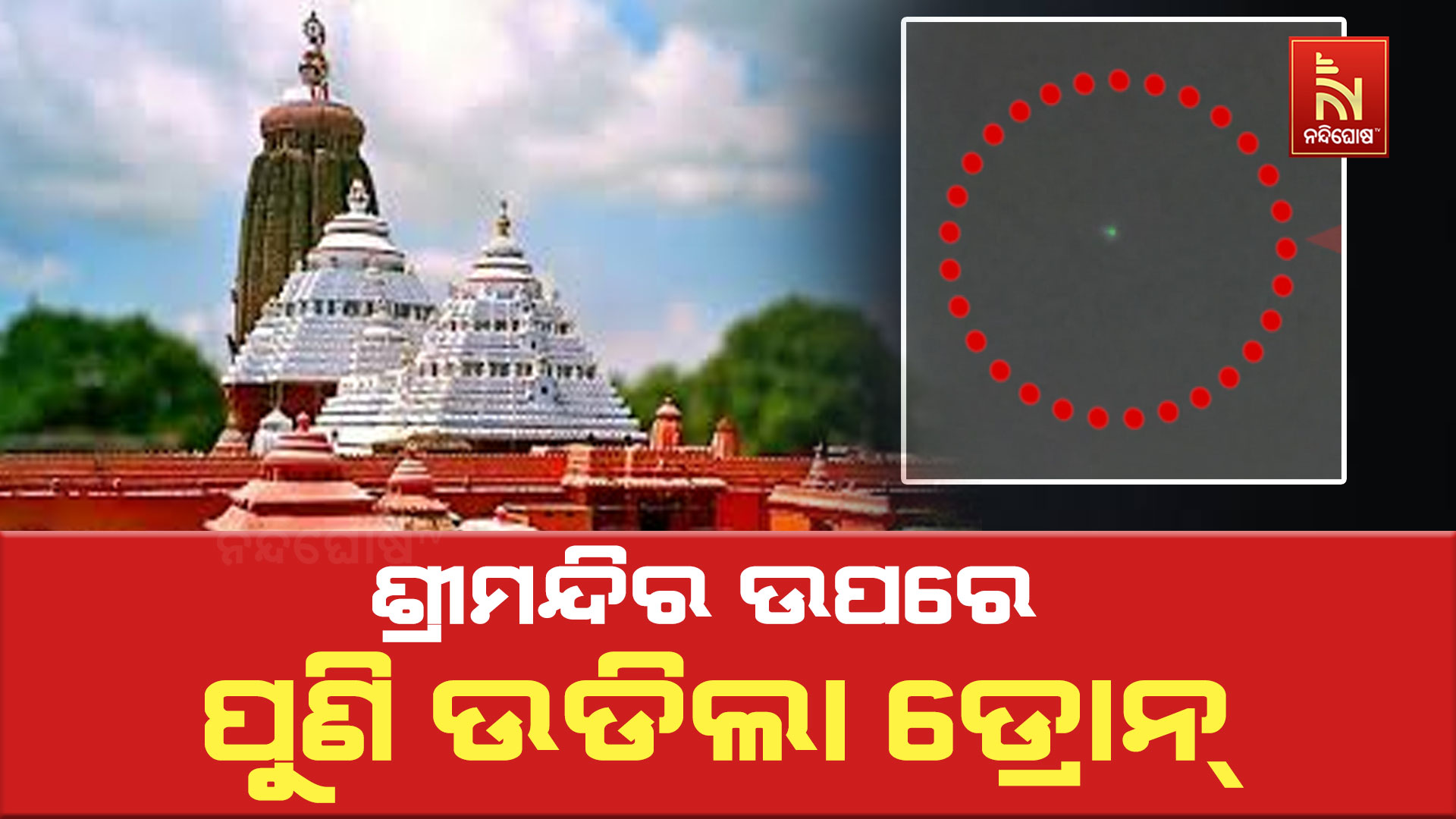 ପୁରୀ: ଶ୍ରୀମନ୍ଦିର ଉପରେ ପୁଣି ଉଡ଼ିଲା ଡ୍ରୋନ । ନିଷିଦ୍ଧାଞ୍ଚଳ ହୋଇଥିଲେ ବି ଉଡ଼ିଛି ଡ୍ରୋନ । ଆଜି ଭୋରୁ ମନ୍ଦିର ଉପରେ ଡ୍ରୋନ ଉଡୁଥିବା ଦେଖିବାକୁ ମିଳିଛି । ଶ୍ରୀମନ୍ଦିର ଓ ଏହାର ଆଖପାଖ ଅଞ୍ଚଳ ତ୍ରିସ୍ତରୀୟ ସୁରକ୍ଷା ବଳୟ ଭିତରେ ଥିବା ବେଳେ ଡ୍ରୋନ ଉଡ଼ିବାକୁ ନେଇ ଉଠିଛି ପ୍ରଶ୍ନ । ସୂଚନାଯୋଗ୍ୟ, ଶ୍ରୀମନ୍ଦିର ଓ ଏହାର ଆଖପାଖ ଶହେ ମିଟର ହେଉଛି ନୋ ଫ୍ଲାଇଂ ଜୋନ । ଏମିତି ସ୍ଥିତିରେ ଡ୍ରୋନ ଉଡ଼ିବା ଓ ସୁରକ୍ଷାକର୍ମୀ ଏବଂ ପୋଲିସ ଏହାର କୌଣସି ସୂଚନା ନପାଇବାକୁ ନେଇ ମନ୍ଦିର ସୁରକ୍ଷା ଉପରେ ପ୍ରଶ୍ନବାଚୀ ସୃଷ୍ଟି ହୋଇଛି ।