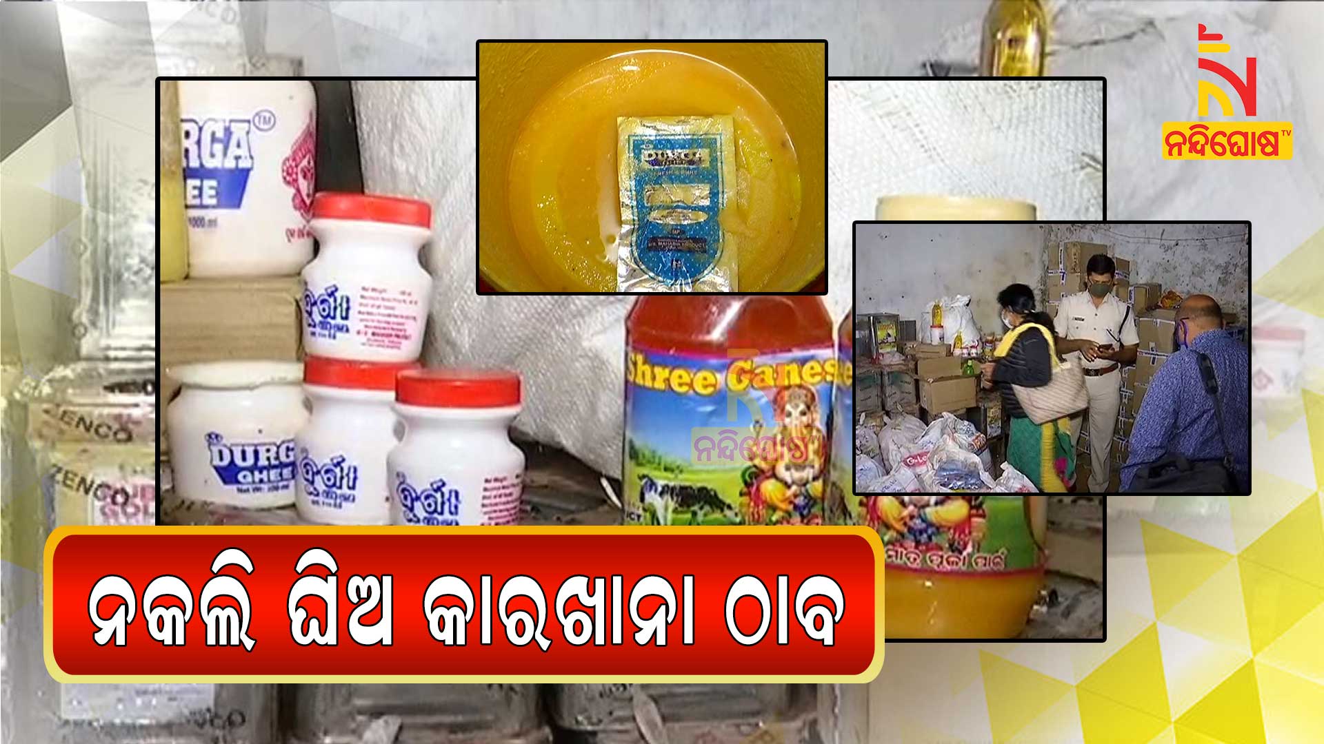 ବାଦାମାବାଡ଼ି ପୋଲିସ, ଫୁଡ୍ ଇନ୍ସପେକ୍ଟର ଓ ଓଜନ ମାପି ବିଭାଗ ରେଡ୍ କରିଛି । ଲକ୍ଷ ଲକ୍ଷ ଟଙ୍କାର ଘିଅ ସହିତ ଘିଅ ତିଆରି ମେସିନ ଓ ପ୍ୟାକେଜ ସାମଗ୍ରୀ ଜବତ ହୋଇଛି । ପୋଲିସ ୨ ଜଣଙ୍କୁ ଅଟକ ରଖି ପଚରାଉଚରା କରୁଛି । ଗୋଦାମ ଘରୁ ସଂଖ୍ୟାଧିକ କାର୍ଟୁନ୍ ସହ ପାମୋଲିନ୍ ତେଲ ଜବତ ହୋଇଛି । ଦୁର୍ଗା ଘିଅ ନାଁରେ ପ୍ୟାକେଜିଂ ହୋଇଥିବା ପ୍ୟାକେଟରେ କମ୍ପାନୀ ଗ୍ରାହକଙ୍କ ଅଭିଯୋଗ ଲାଗି କୌଣସି ଠିକଣା କି ଟେଲିଫୋନ୍ ନମ୍ବର ରଖିନାହିଁ । କିଛି ପ୍ୟାକଟରେ ଏକ୍ସପାରୀ ଡେଟ୍ ମଧ୍ୟ ଉଲ୍ଲେଖ ନାହିଁ ।