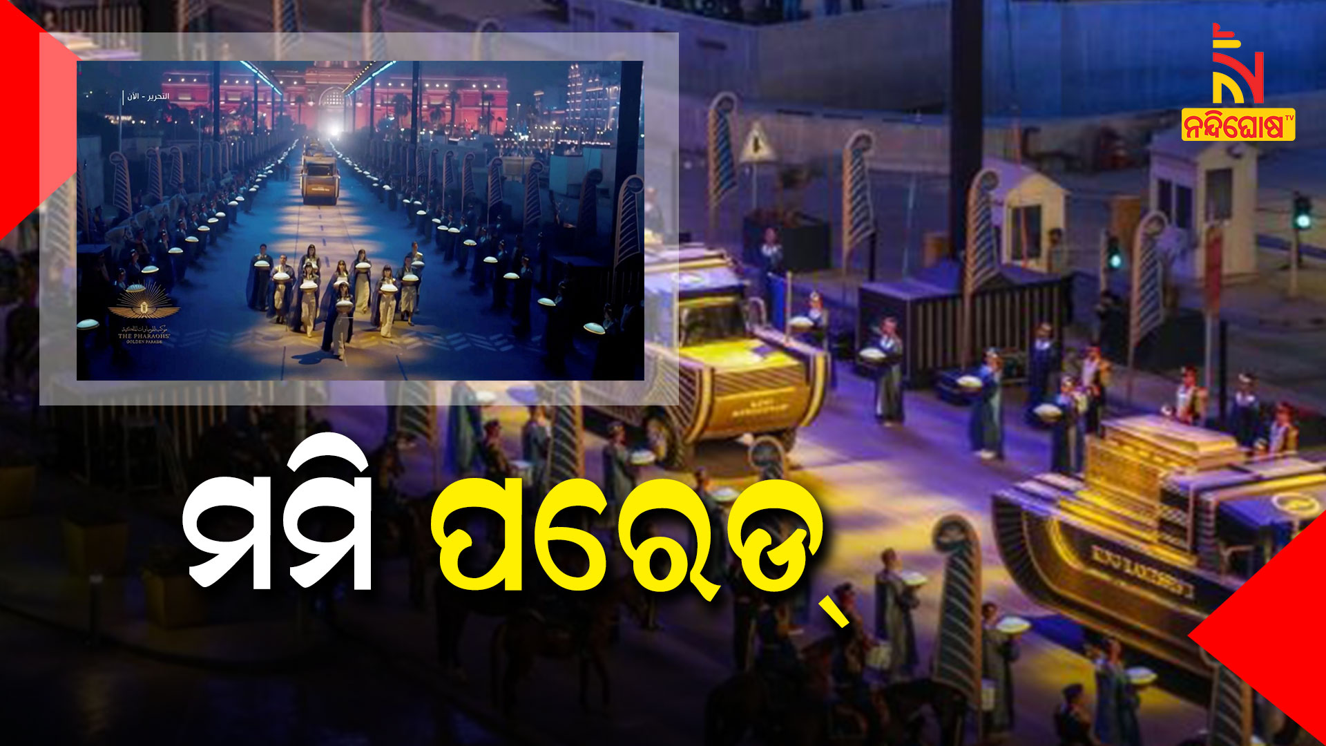 ଦେଶନ୍ତୁ ଏହି ଭବ୍ୟ ପରେଡକୁ। ଏ ଦୃଶ୍ୟ ହେଉଛି ମିସର୍ ଦେଶର । ଗତ ଶନିବାର ଆୟୋଜନ ହୋଇଥିଲା ଏହି ଐତିହାସିକ ପରେଡ୍ । ସେ ପୁଣି କୌଣସି ବିଶେଷ ବ୍ୟକ୍ତିଙ୍କ ପାଇଁ କି ବିଶେଷ ଉତ୍ସବ ପାଇଁ ନୁହେଁ । ବରଂ ଏହି ଭବ୍ୟ ଉତ୍ସବର ଆୟୋଜନ ହୋଇଛି ୨୨ ମମିଙ୍କ ପାଇଁ। ଆଉ ଏହି ମମିଗୁଡ଼ିକ ହେଉଛି ଇଜିପ୍ଟର ପ୍ରସିଦ୍ଧ ରାଜା ବା ଫାରୋଁଙ୍କର । ଯେଉଁମାନେ ଦିନେ ମିଶରକୁ ଶାସନ କରୁଥିଲେ ଓ ତିଆରି କରିଥିଲେ ବିଶାଳ ପିରାମିଡ୍ ।